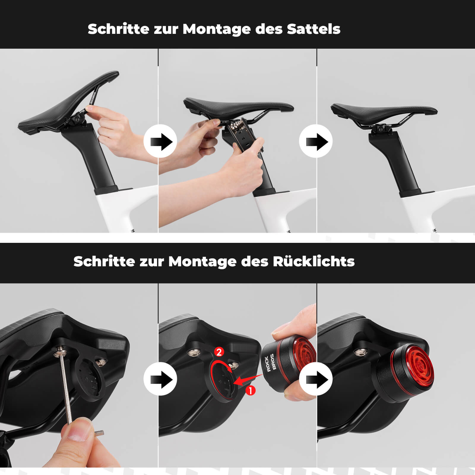 Dank des universellen Designs ist der Sattel kompatibel mit Citybikes, MTBs und E-Bikes. Die Montage ist schnell und unkompliziert, auch für Einsteiger problemlos durchführbar.