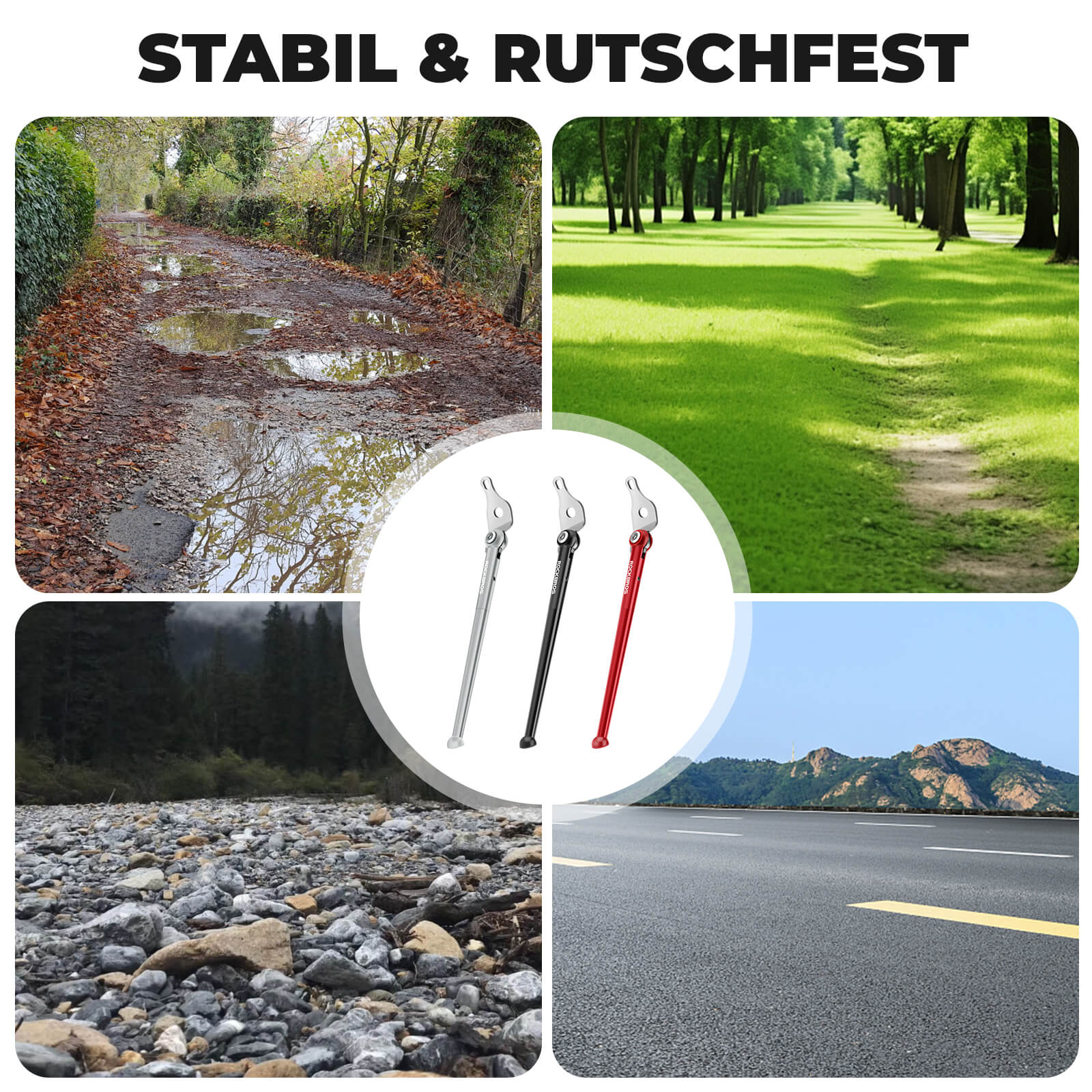 STABIL UND RUTSCHFEST: Der verstärkte und verdickte Fahrradständer bietet eine hohe Tragfähigkeit. Die vergrößerte Bodenfläche verbessert die Stützkraft. Er stützt Ihr Fahrrad zuverlässig und stabil und sorgt für effektiven Rutschschutz.