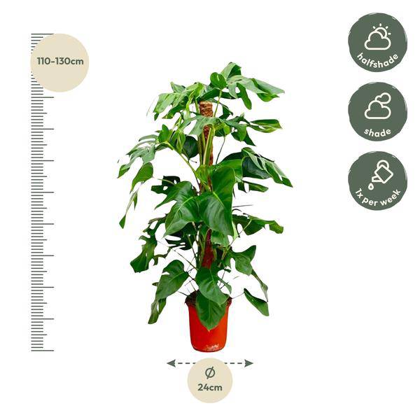 🏡 Tropisches Flair: Mit einer Höhe von ca. 120cm und einem Topfdurchmesser von Ø24cm ist diese Monstera ein dekoratives Highlight für Wohnzimmer, Büro oder Wintergarten.