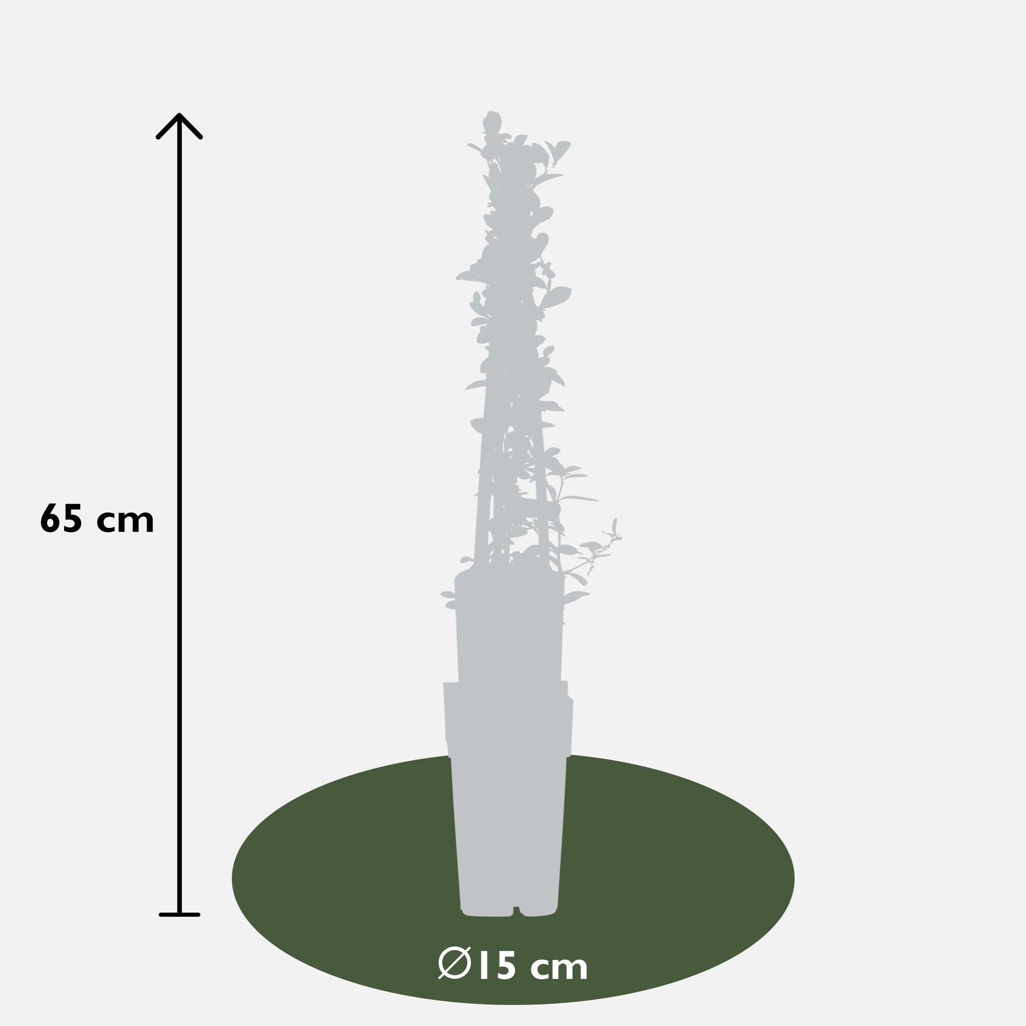 Mit einer Höhe von ca. 65cm im Ø15cm-Topf ist dieser Strauch bereits gut entwickelt und kann direkt in Ihrem Garten eingesetzt werden.