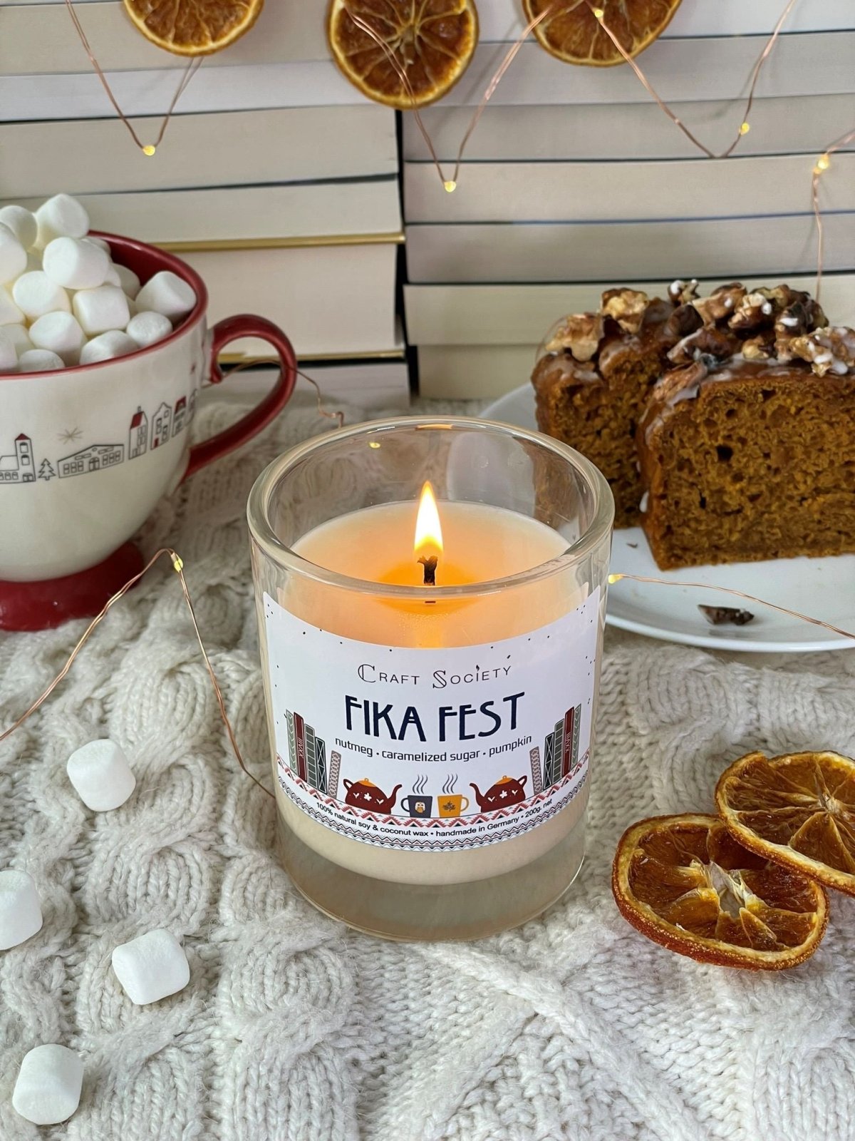 Our Fika Fest Scented Candle fills the air with an irresistible aroma of freshly baked treats, weaving its way through the surroundings with a touch of magic. Each breath is a journey into a world of comfort and delight, where memories of cozy moments come to life.