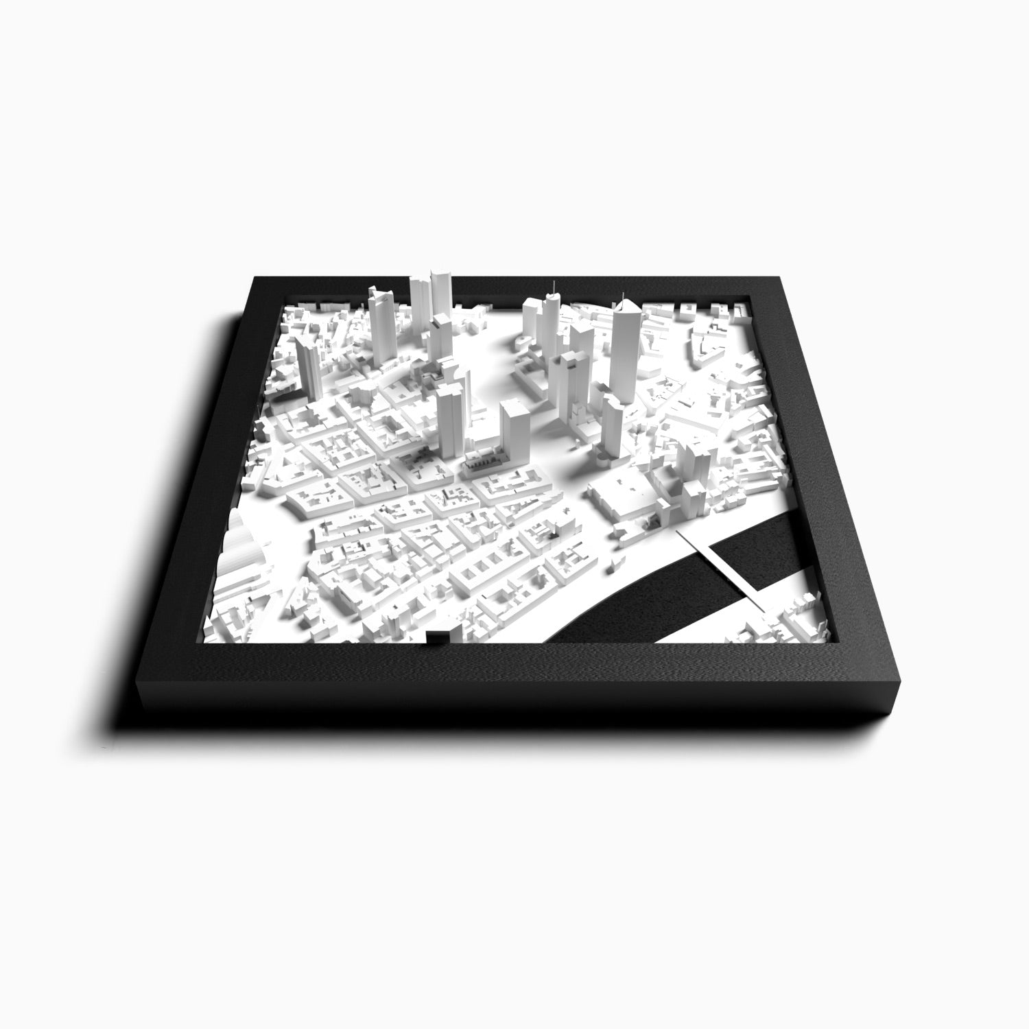 Ein Fenster zur Skyline: Entdecke die dynamische Silhouette Frankfurts, eingefangen in einem meisterhaften 3D-Modell. Die eindrucksvollen Wolkenkratzer, die das Stadtbild prägen, werden zu Miniaturwundern auf deinem Schreibtisch oder Regal. Dieses Kunstwerk fängt den Geist Frankfurts ein – seine Energie, seine Architektur, seine unermüdliche Dynamik.