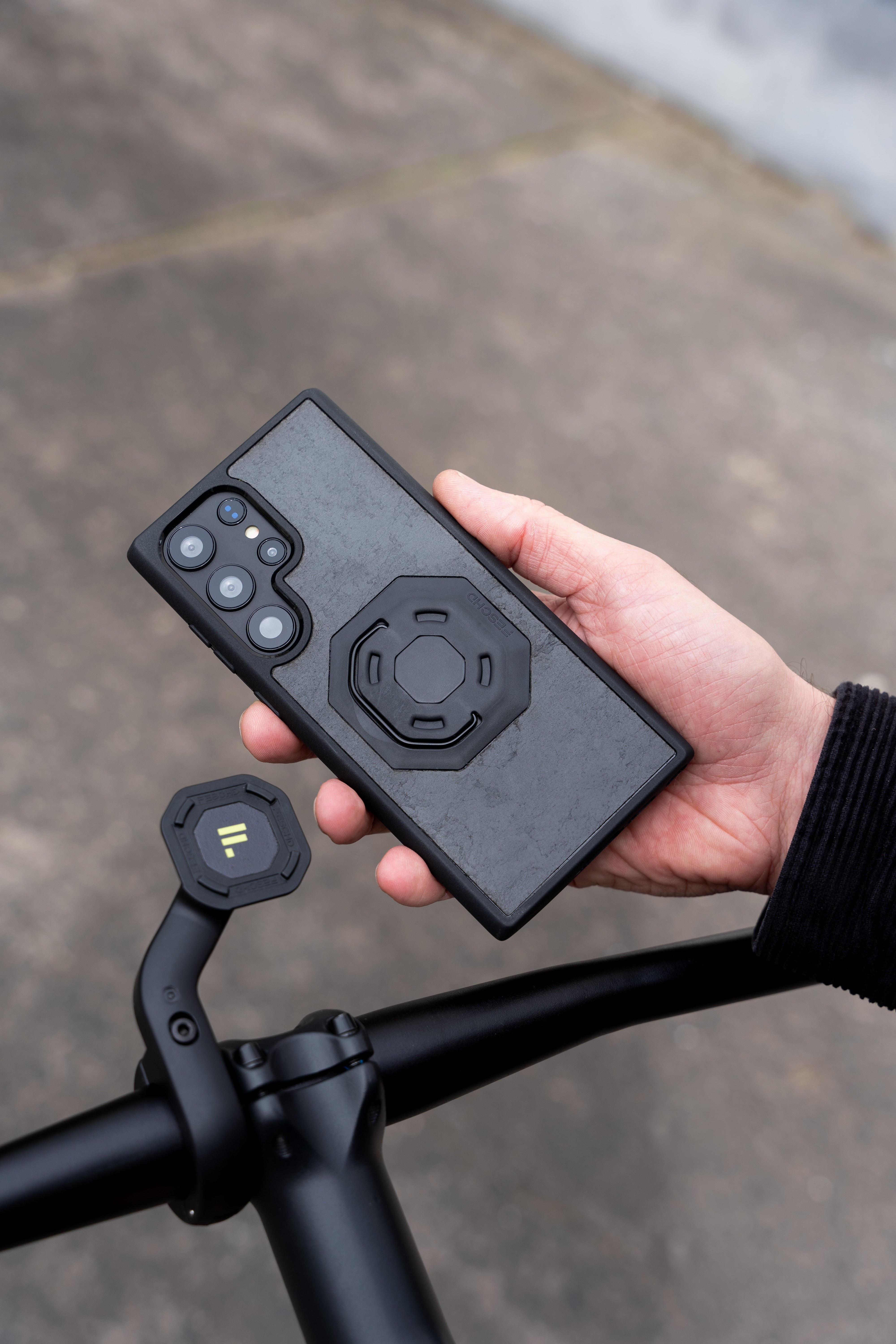 Die FESCHD Galaxy Hülle inkl. Adapterplatte kombiniert hochwertigen Schutz mit einzigartigem Design aus handverlesenem Echtschiefer und ist vollständig kompatibel mit allen FESCHD Halterungen.