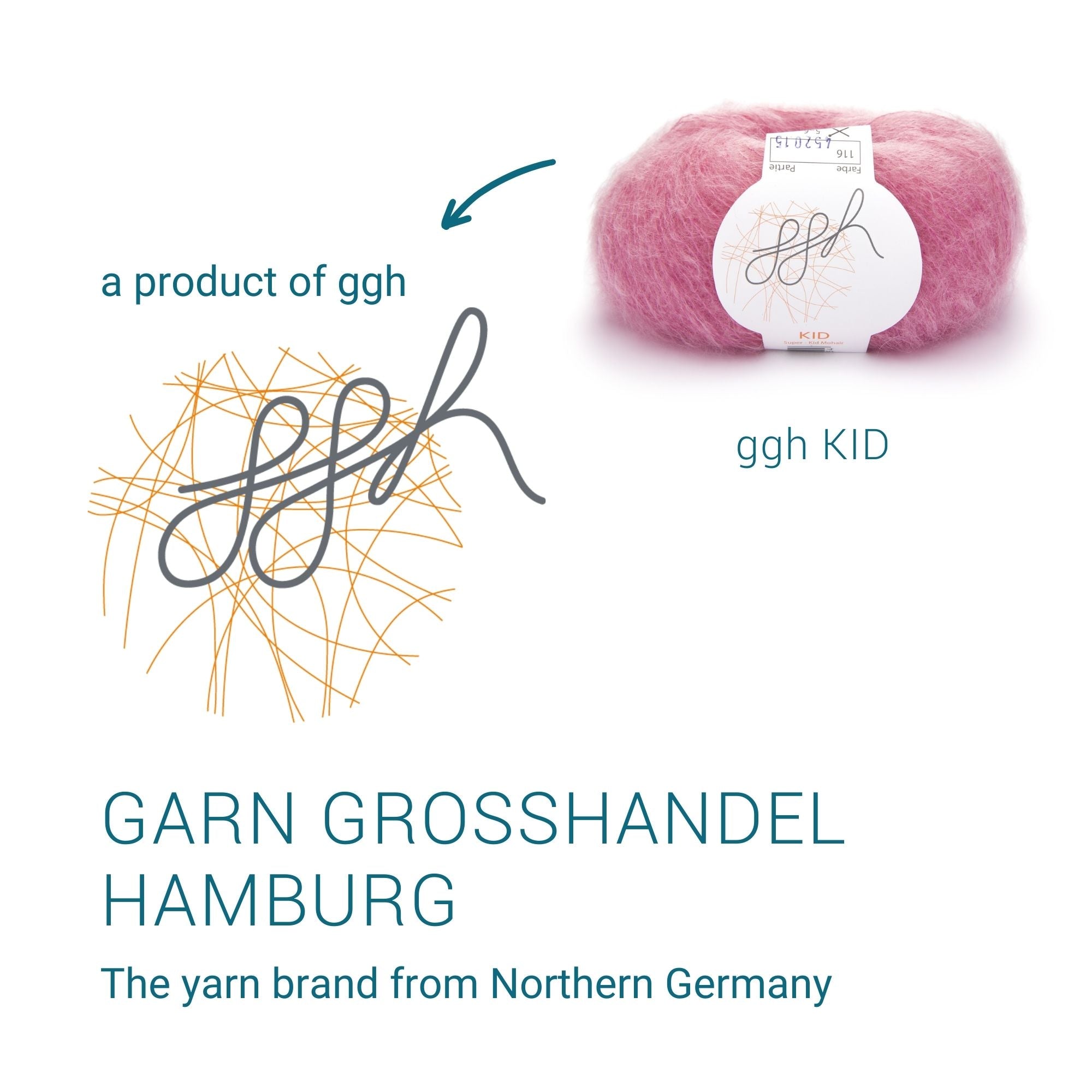 ggh Kid ist ein edles Lacegarn aus 65% Super-Kid-Mohairwolle, 5% Schurwolle und 30% Polyamid. Die Super-Kid-Mohairfaser ist besonders fein und verleiht dieser Mohairwolle ihre außergewöhnliche Leichtigkeit und den weichen, flauschigen Charakter. In der Farbe 116 - Korallrosé wirkt das Garn elegant und zeitlos – ideal für klassische Strickprojekte, die du lange lieben wirst. Mit nur ca. 150g lässt sich bereits ein Pullover stricken, der kaum spürbar auf der Haut liegt und gleichzeitig wunderbar wärmt.