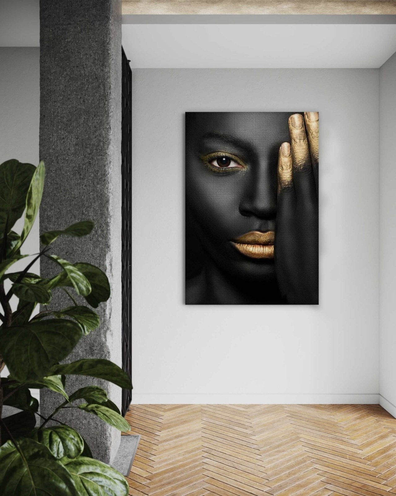 Titel: Golden Face II - Leinwandbild Luxuriös