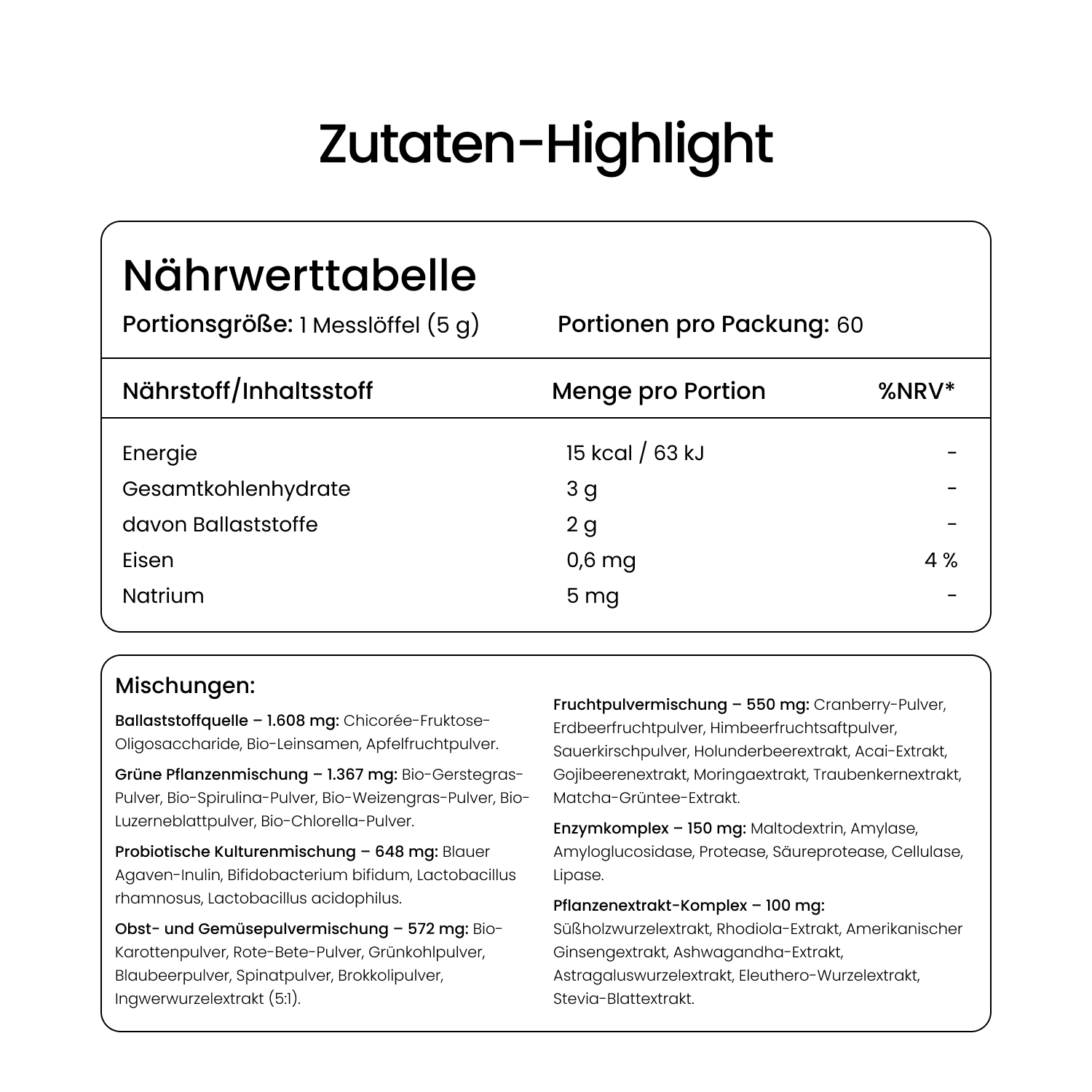 Features a comprehensive Superfood Greens blend with a variety of green plant ingredients, including barley grass powder, spirulina powder, spinach... Lesen Sie mehr