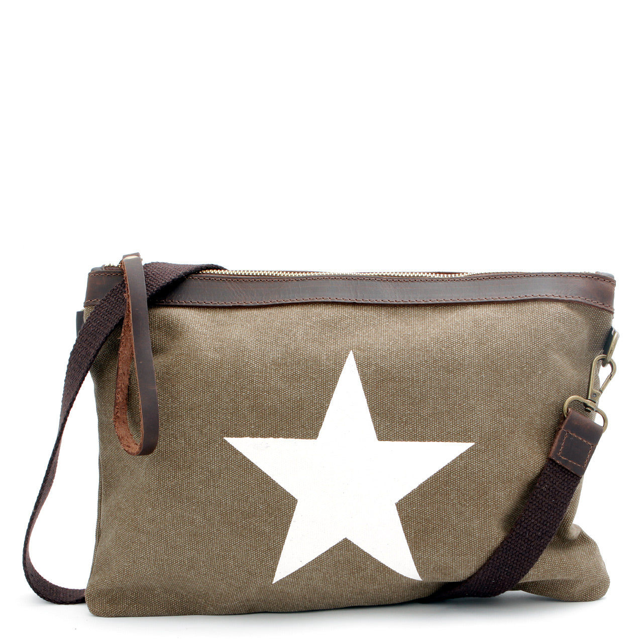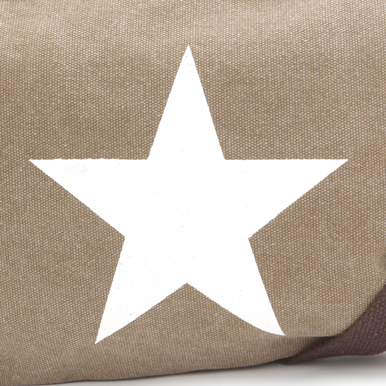 Modische Beuteltasche mit angesagtem Stern Motiv in braun mit braunen Lederaplikationen. Obermaterial Stoff mit Lederapplikationen, mit 3 Innentaschen, Reißverschluss, Tragegurt,... Lesen Sie mehr