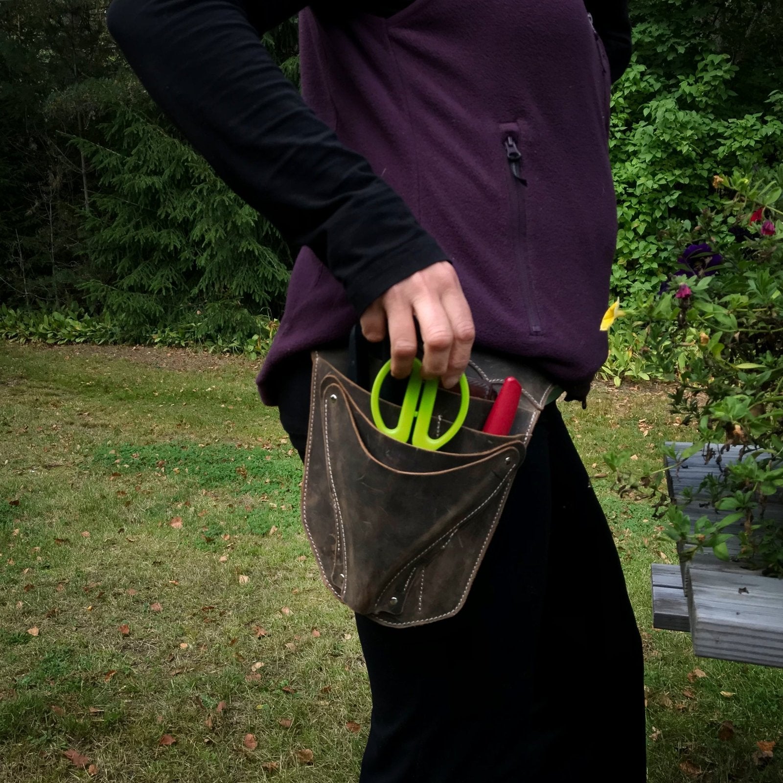 Unsere Werkzeug Gürteltasche Leder ist dein idealer Begleiter für ein entspanntes und organisiertes Gärtnern.