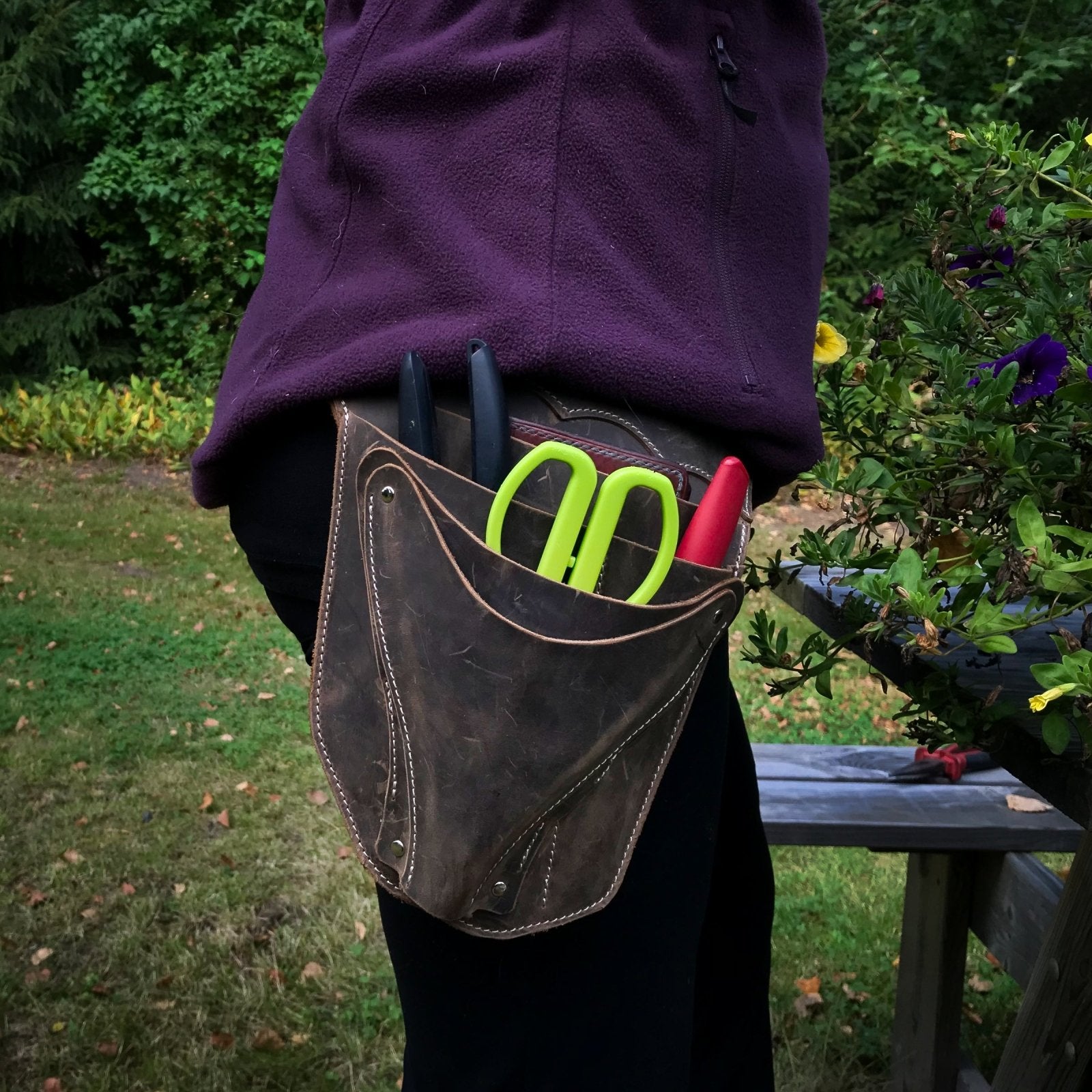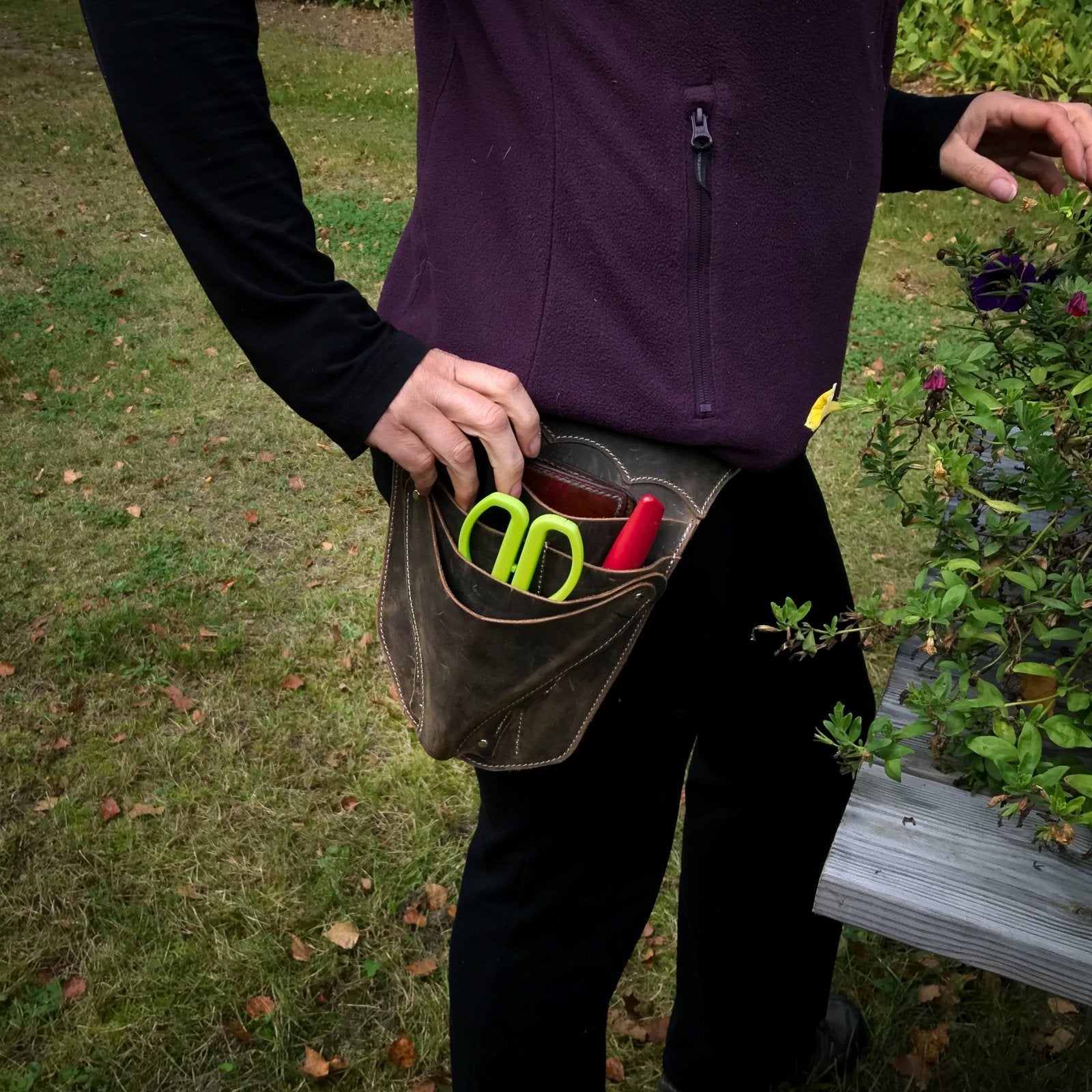 Unsere Werkzeug Gürteltasche Leder ist dein idealer Begleiter für ein entspanntes und organisiertes Gärtnern.