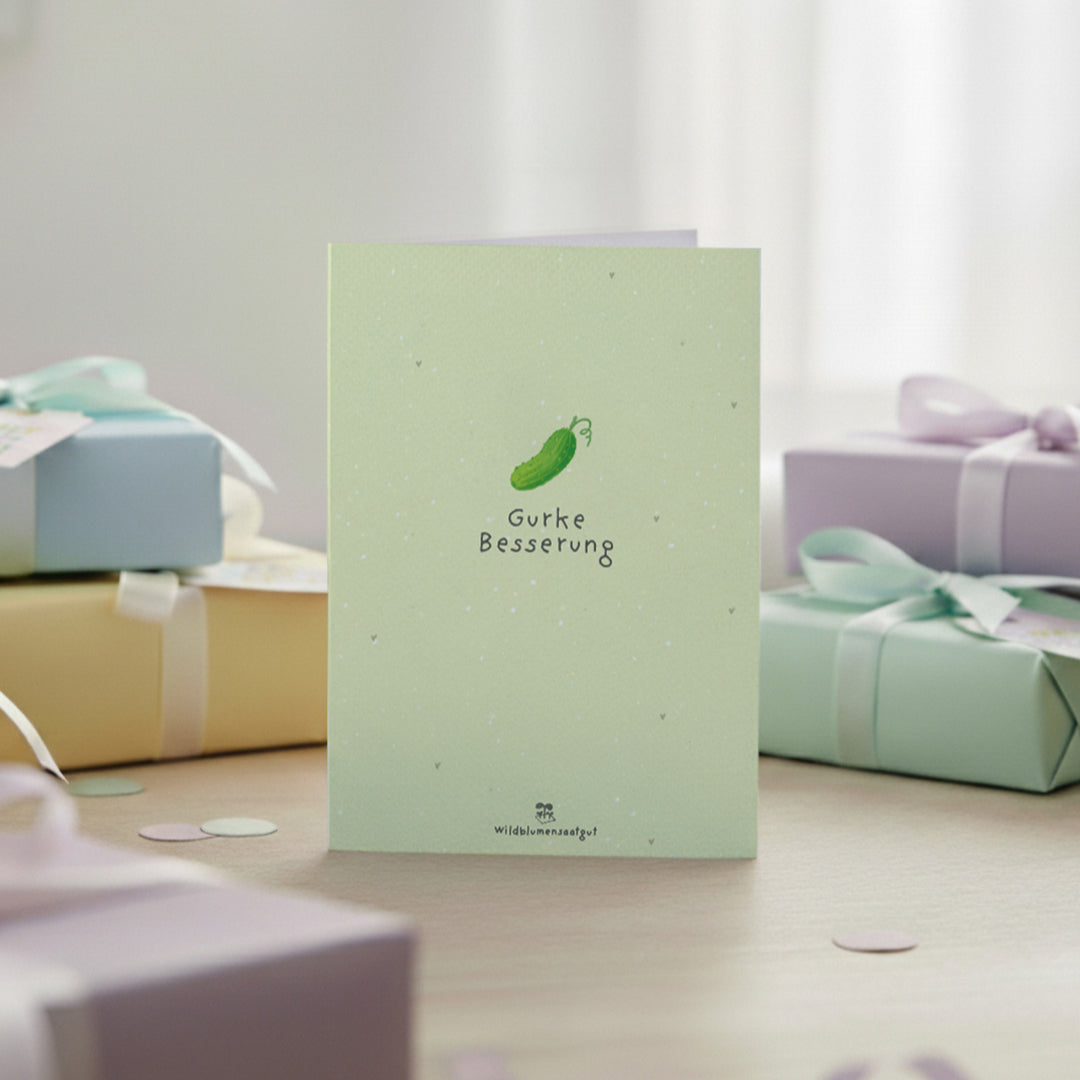 Gurke Besserung! Diese Karte wünscht auf liebevolle Weise "Gute Besserung" & bringt ein kleines Lächeln & ganz viel liebevolle Aufmunterung.... Lesen Sie mehr