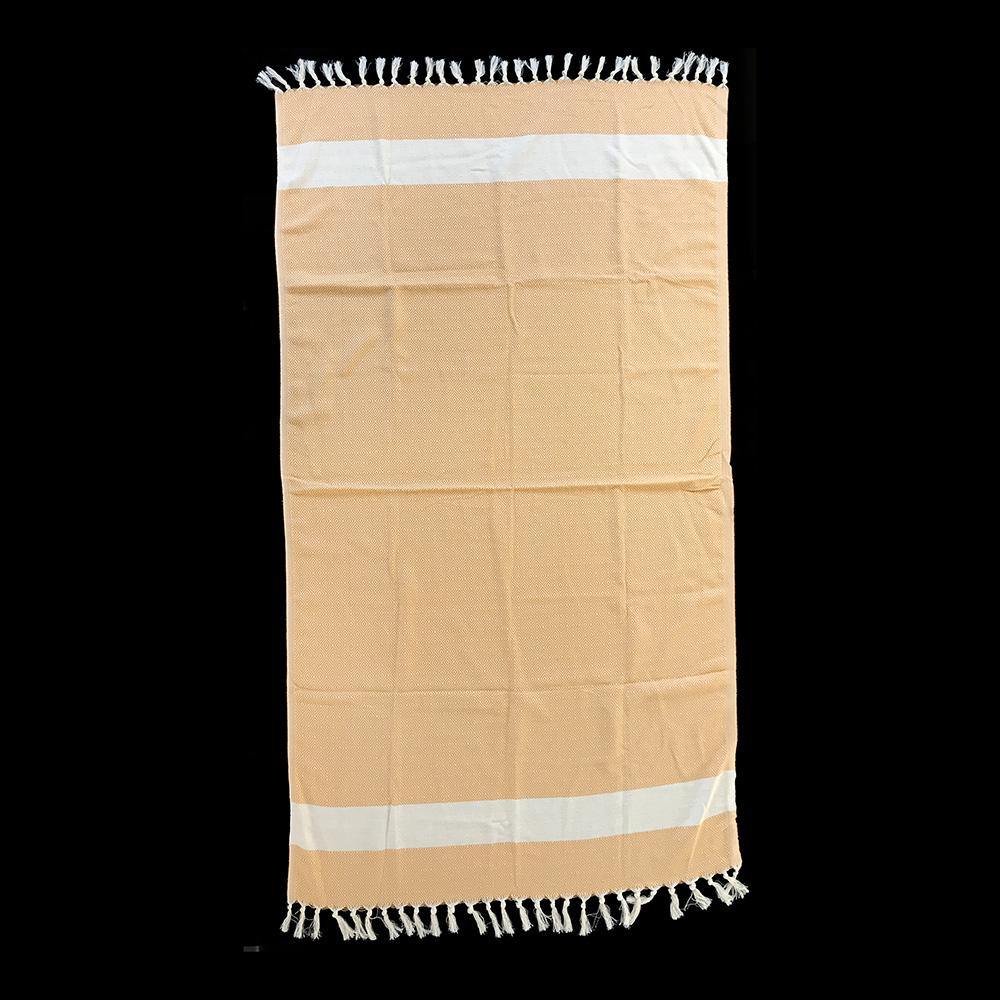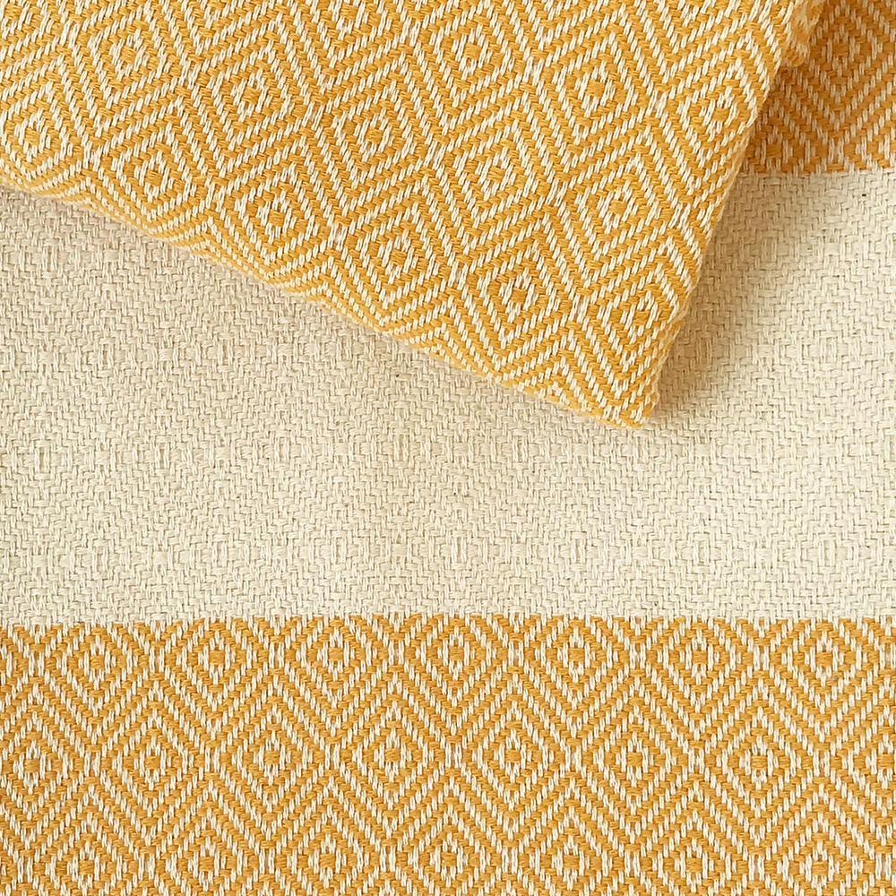 ca. 100 x 170 cm, 100% Baumwolle, naturweiß/gelb, ca. 400 Gramm, Flächengewicht 220 g/m². Waschen bis 40 Grad, Wäschetrockner möglich (Waschanleitung Hamamtuch).