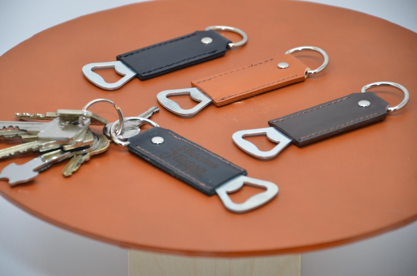 Handgefertigter Leder Schlüsselanhänger mit Flaschenöffner und Gravur – Geschenk für Männer, Rustikales Design