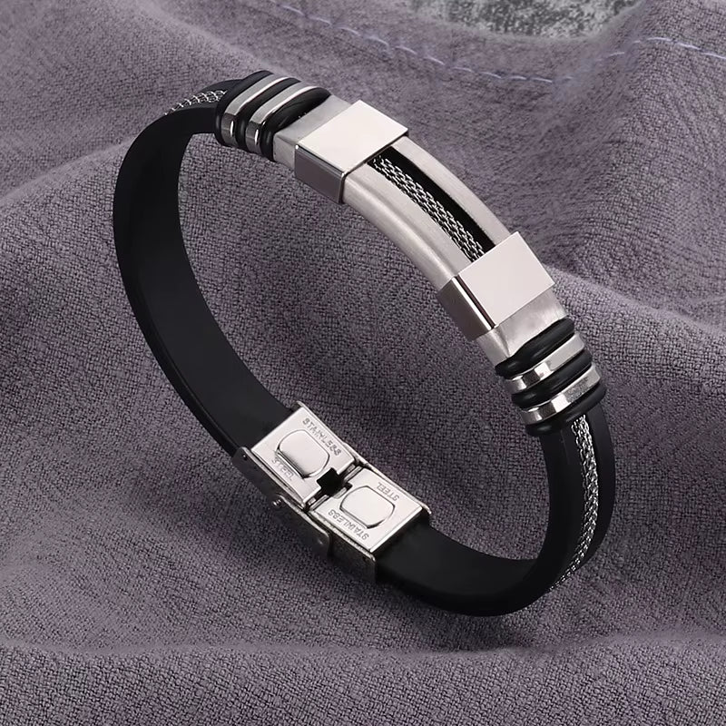 Herren Armband aus Edelstahl & Silikon – Schwarz/Gold mit Magnetverschluss
