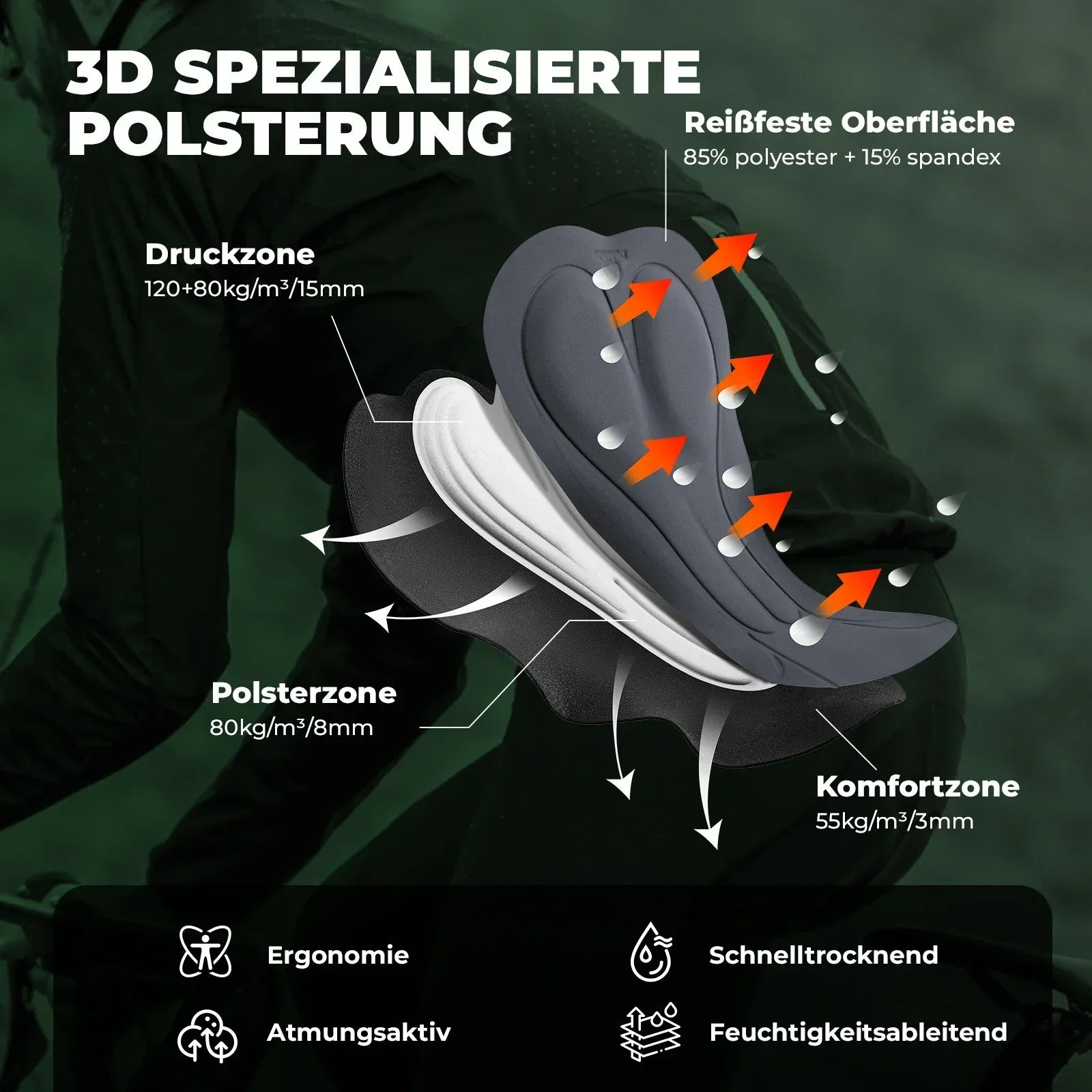 Herren Radlerhose mit Träger Gepolstert, Fahrradhose Kurz, Atmungsaktive schnelltrocknende