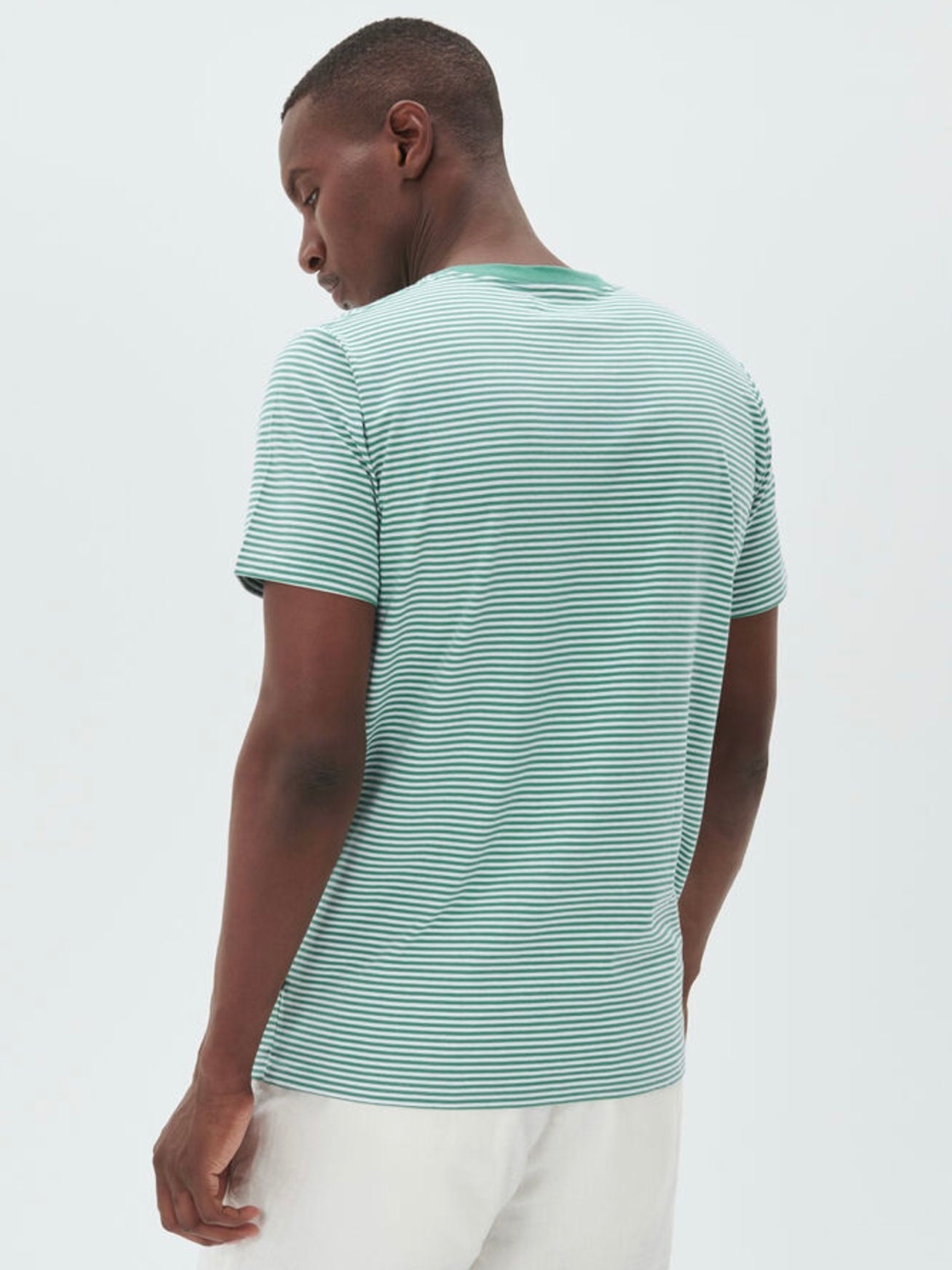 Basic Herren T-Shirt mit feinen Streifen. Die softe Baumwolle ist sehr angenehm zu tragen. Kürzere Ärmel und gerade Passform. regular... Lesen Sie mehr