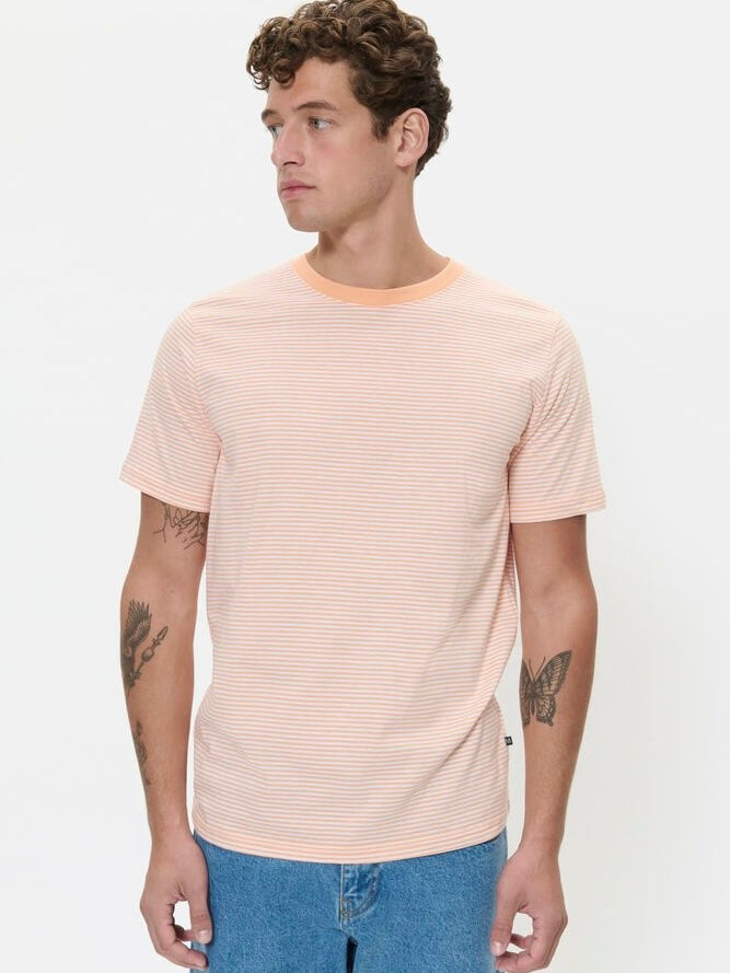 Basic Herren T-Shirt mit feinen Streifen. Die softe Baumwolle ist sehr angenehm zu tragen. Kürzere Ärmel und gerade Passform. regular... Lesen Sie mehr