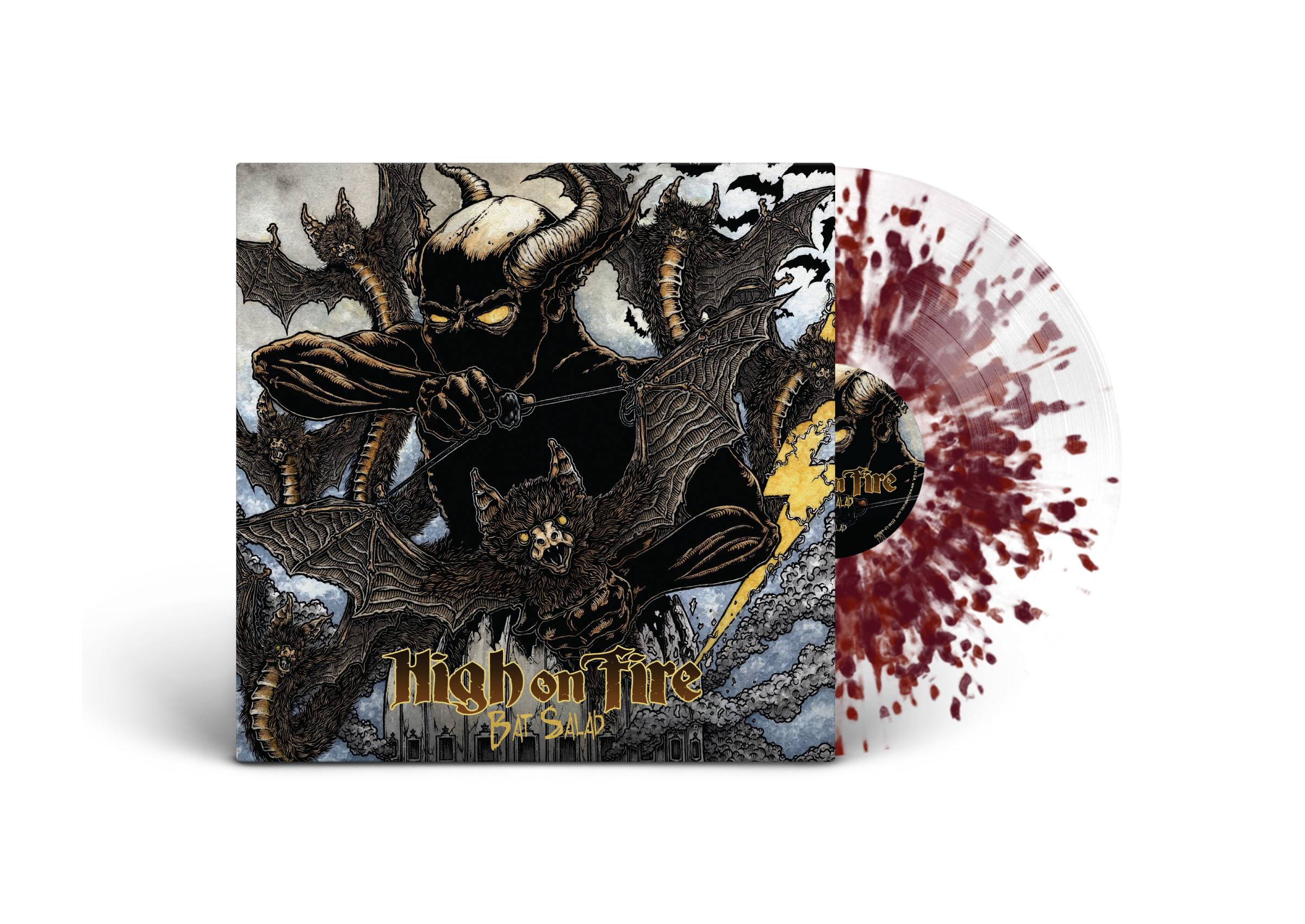 High On Fire - Bat Salad; VINYL; Single 180G Heavy Splatter: Clear Base + Grape splatter & Ruby Heavy Splatter LP; DL card