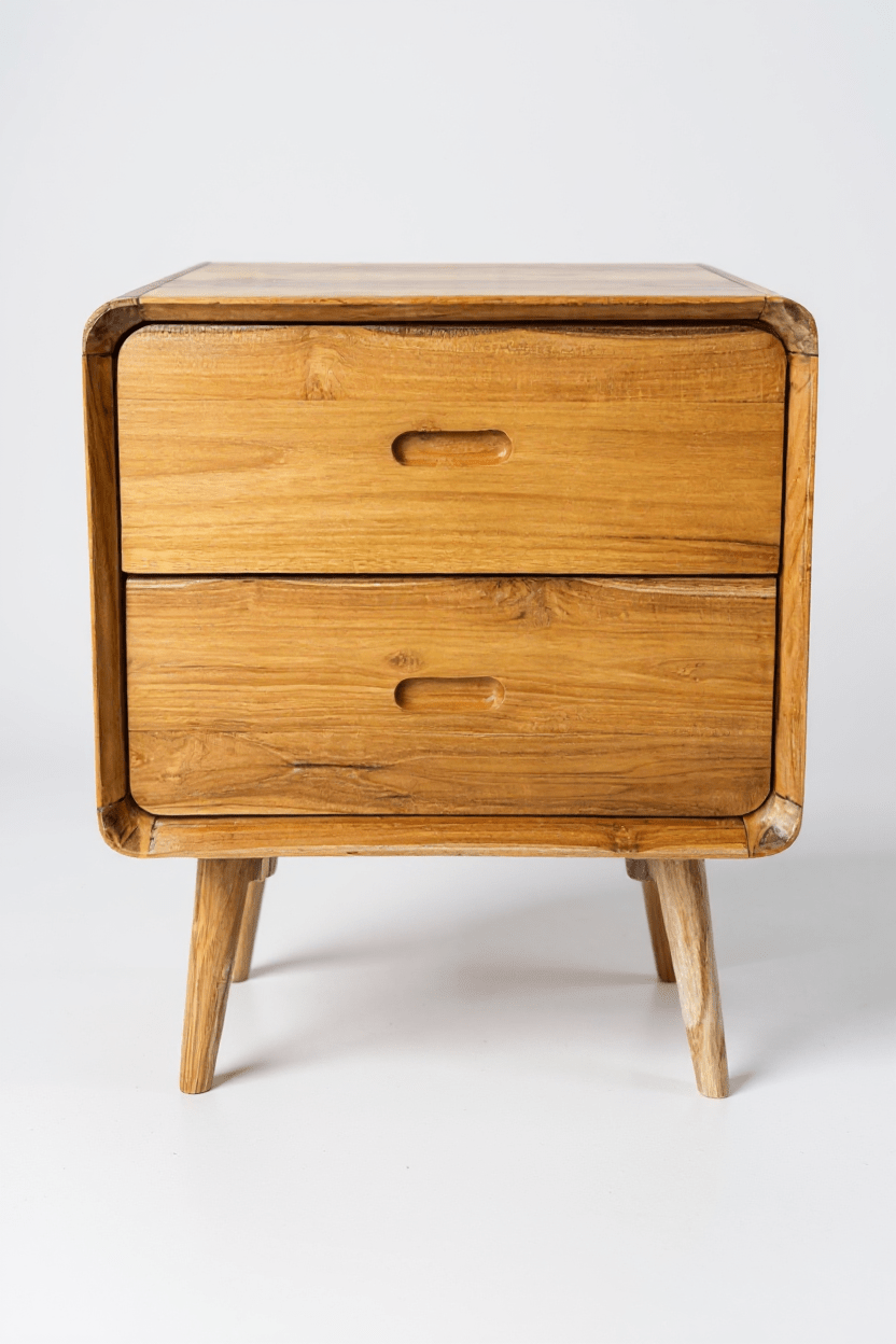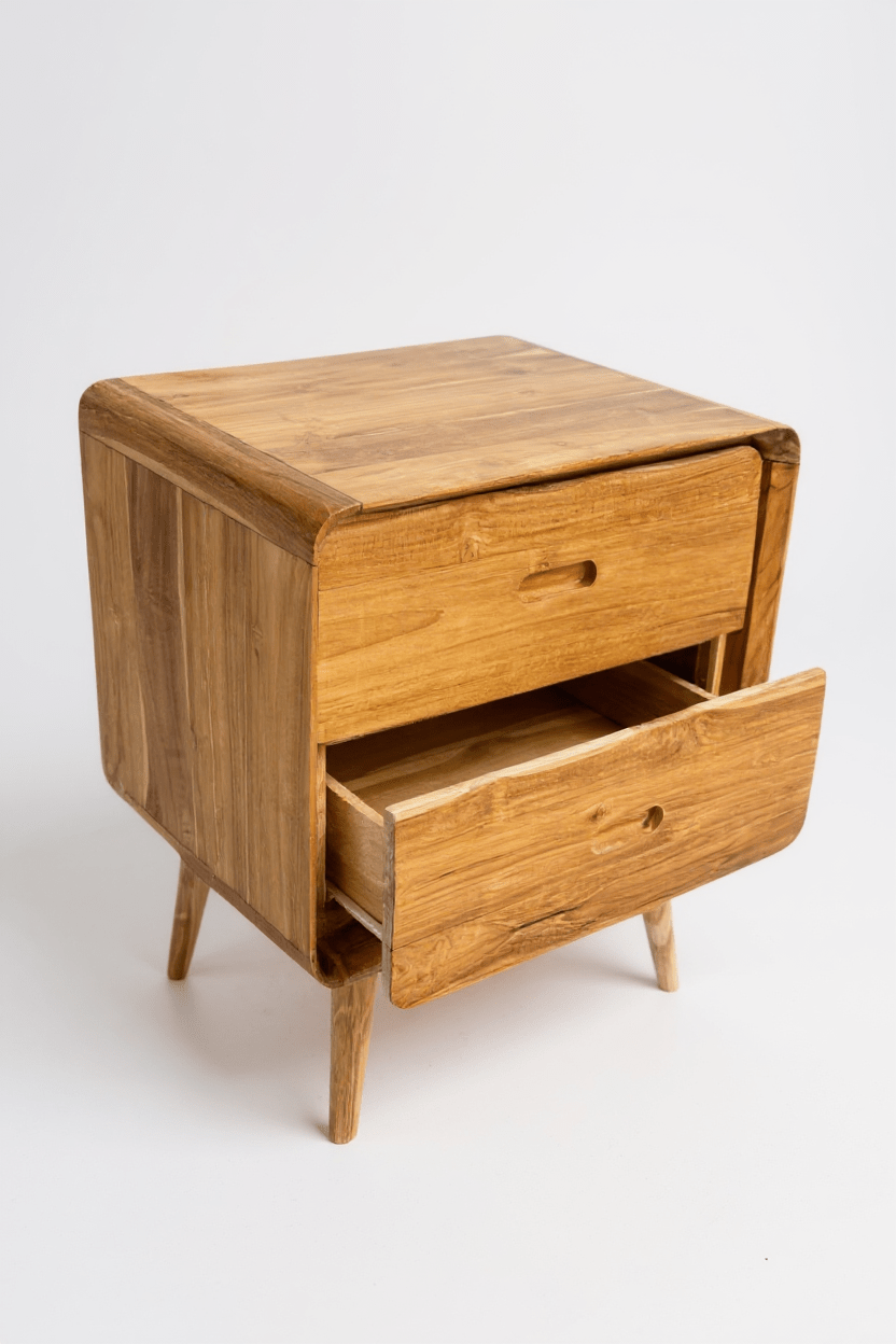 Dieser stilvolle Beistelltisch aus massivem Teakholz vereint Funktionalität und ästhetisches Design auf elegante Weise. Mit einer Höhe von 50 cm, einer Länge von 40 cm und einer Breite von 60 cm ist er kompakt genug, um in nahezu jedem Raum einen Platz zu finden, bietet aber gleichzeitig viel Stauraum durch seine zwei großzügigen Schubladen. Die gut erkennbare, natürliche Maserung des hochwertigen Teakholzes verleiht dem Tisch eine warme Ausstrahlung und macht jedes Exemplar zu einem Unikat, das durch seine individuellen Holzstrukturen eine einzigartige Note in den Raum bringt.