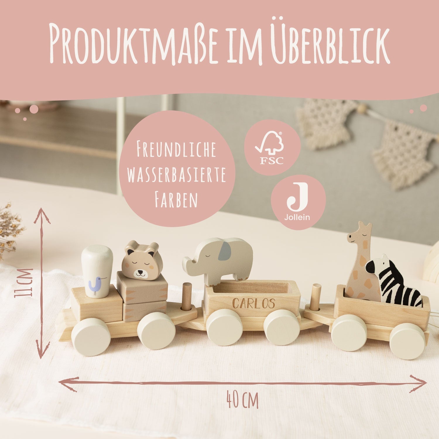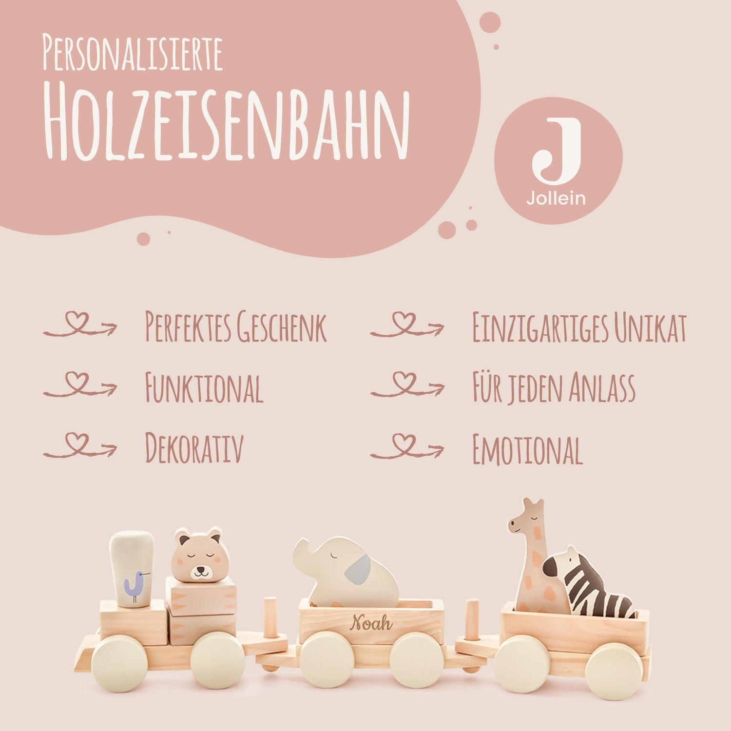 Wir personalisieren die Eisenbahn mit modernster Lasertechnik und gravieren den Namen deines Kindes direkt in das Holz. So wird aus einem beliebten Spielzeug aus Holz ein ganz persönliches Geschenk zur Geburt, Taufe, zum Geburtstag oder zu Weihnachten.