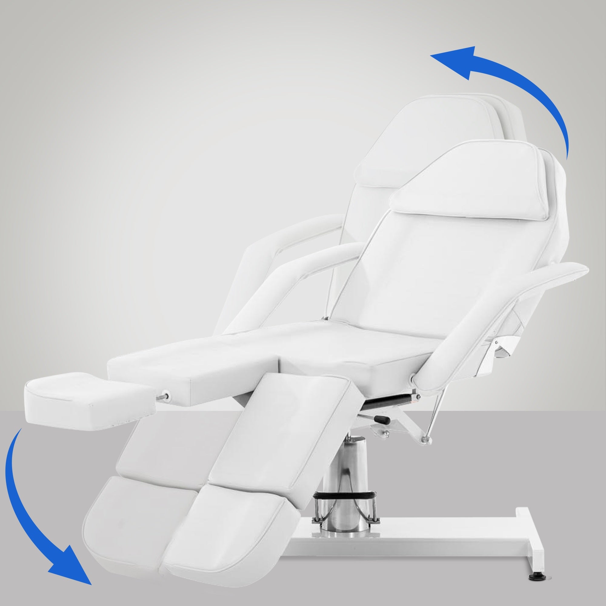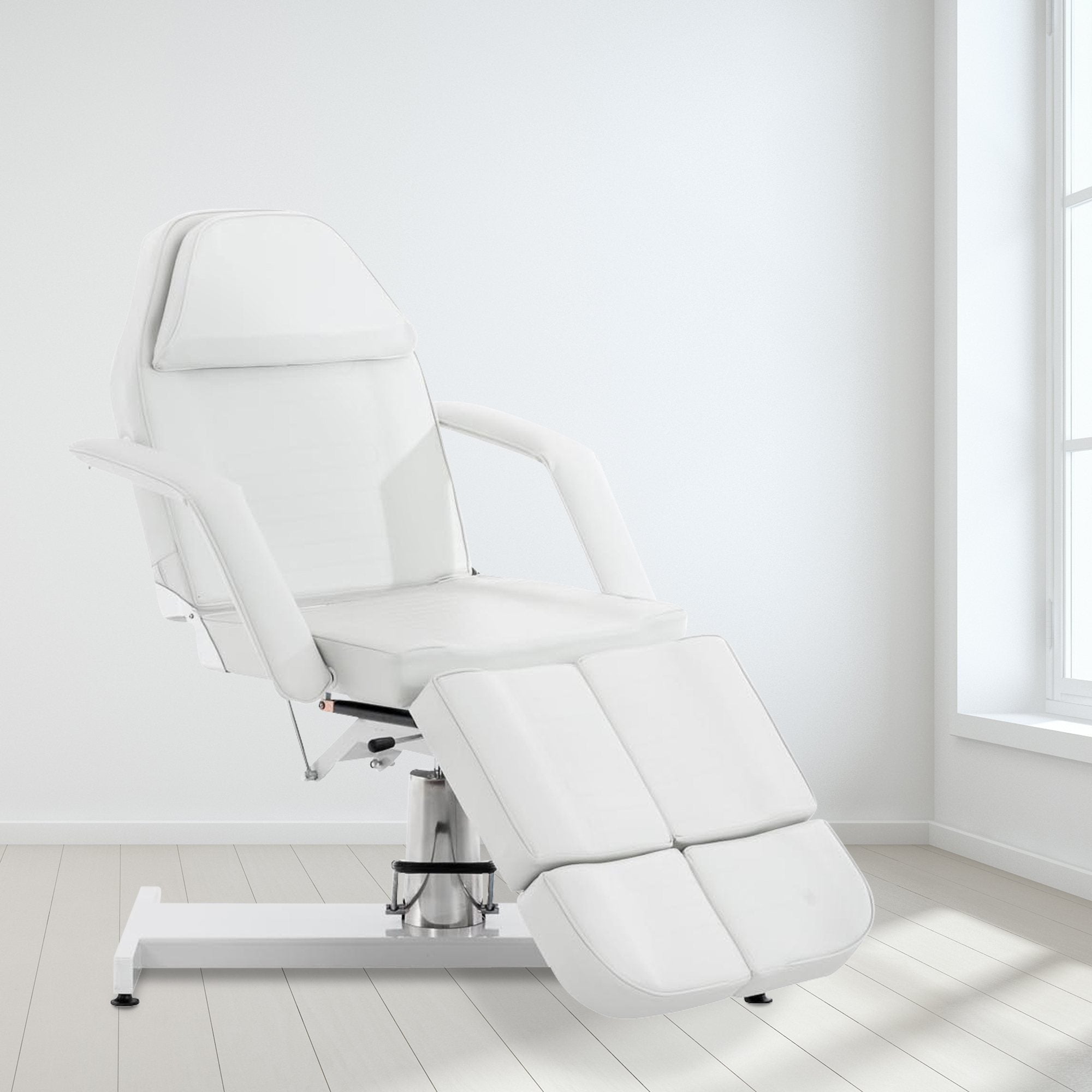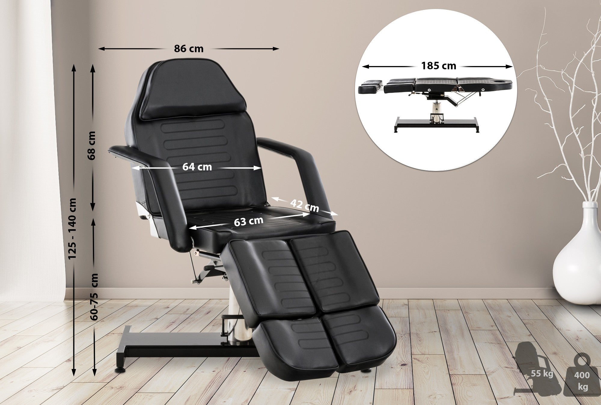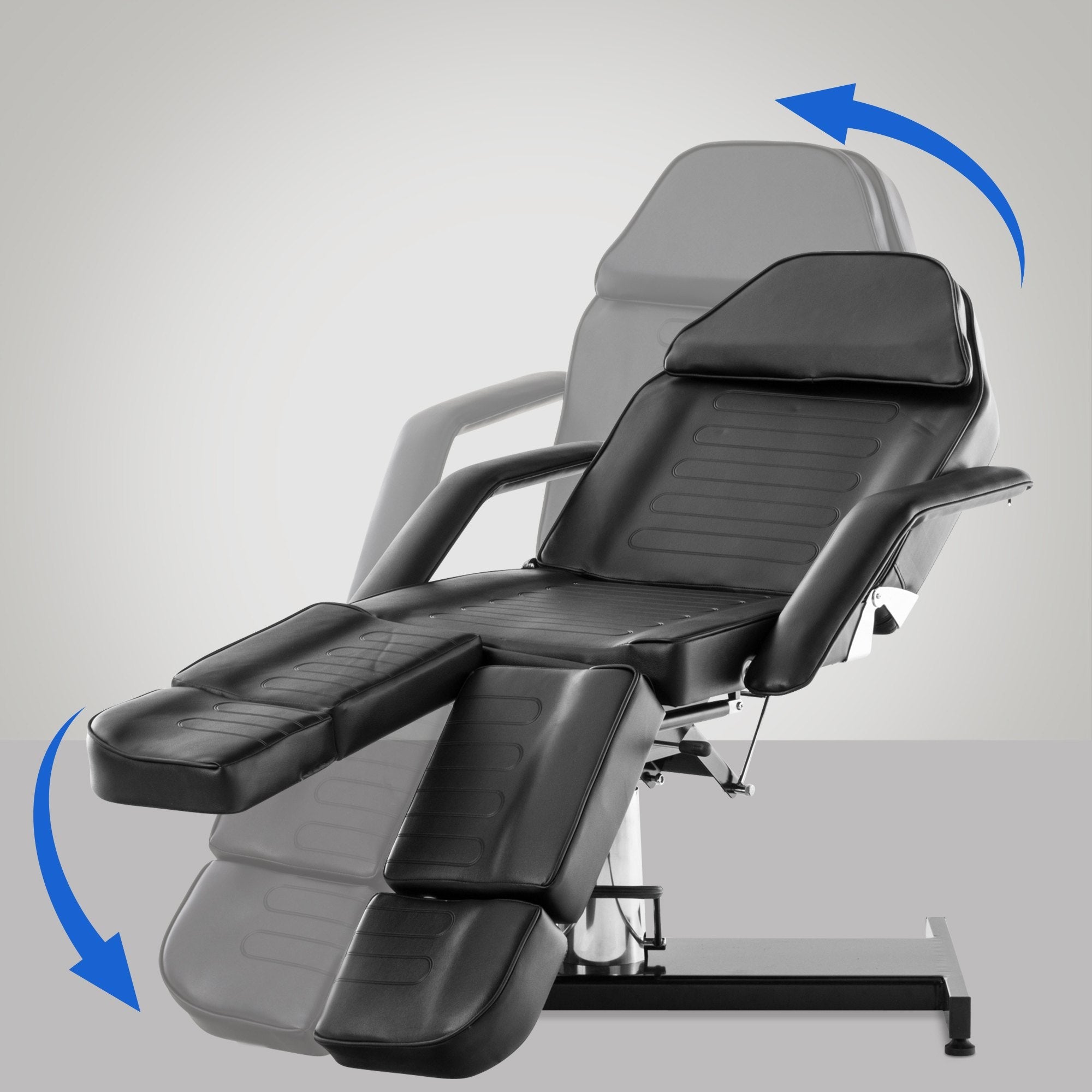 Hydraulisch höhenverstellbar Rückenlehne separat verstellbar (auch komplett waagerecht) Geteilte Fußelemente, ebenfalls waagerecht positionierbar Gesichtsöffnung unter dem herausnehmbaren Kopfpolster für bequeme... Lesen Sie mehr