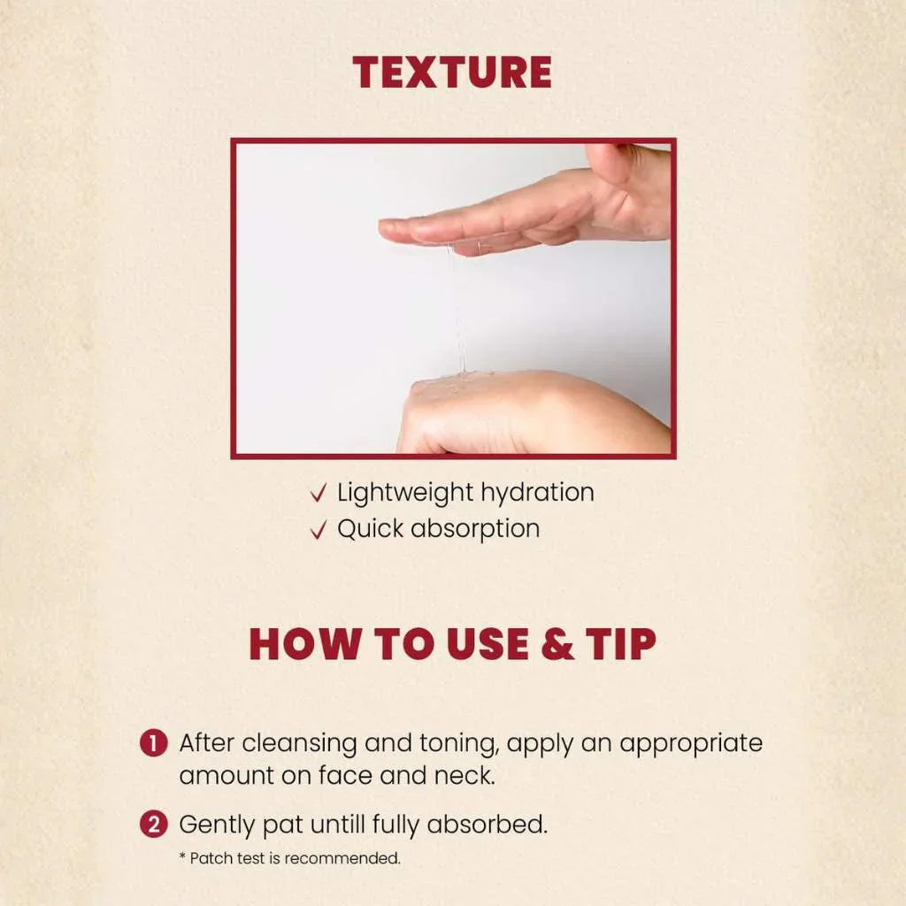 Die Essenz überzeugt durch ihre leichte, schnell einziehende Textur, die sich mühelos in jede Hautpflegeroutine integrieren lässt. Morgens und abends nach dem Toner auf Gesicht und Hals auftragen und sanft einklopfen, damit das Produkt ihre Wirkung optimal entfalten kann. Die Kombination aus Panthenol, Allantoin und Hyaluronsäure rundet die Formulierung ab und sorgt für eine beruhigte, intensiv durchfeuchtete Haut mit frischer Leuchtkraft.
