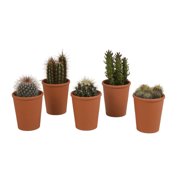 Die Pflanzen werden in mediterranen Terrakotta-Töpfen geliefert, sodass sie sofort aufgestellt werden können – ganz ohne zusätzlichen Übertopf. Ob auf der Fensterbank, im Büro oder als kleine Tischdeko, diese Kakteen sind vielseitig einsetzbar und passen in jeden Wohnstil.