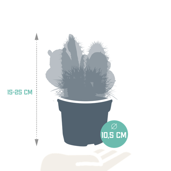 🌵 Abwechslungsreicher Mix: Enthält 3 verschiedene Kakteen in Ø10,5cm Töpfen – jede Pflanze mit einzigartiger Form, Höhe und Farbe.