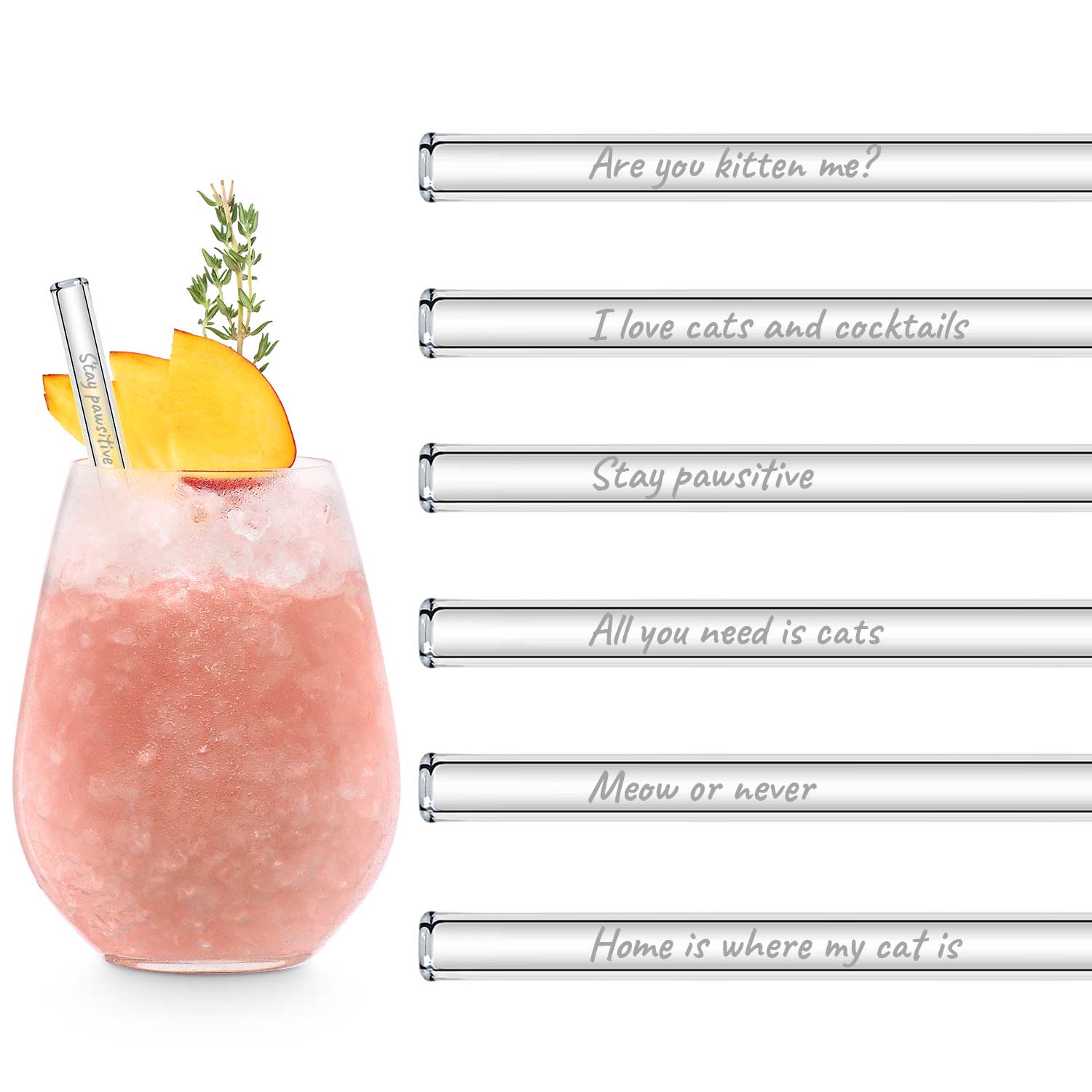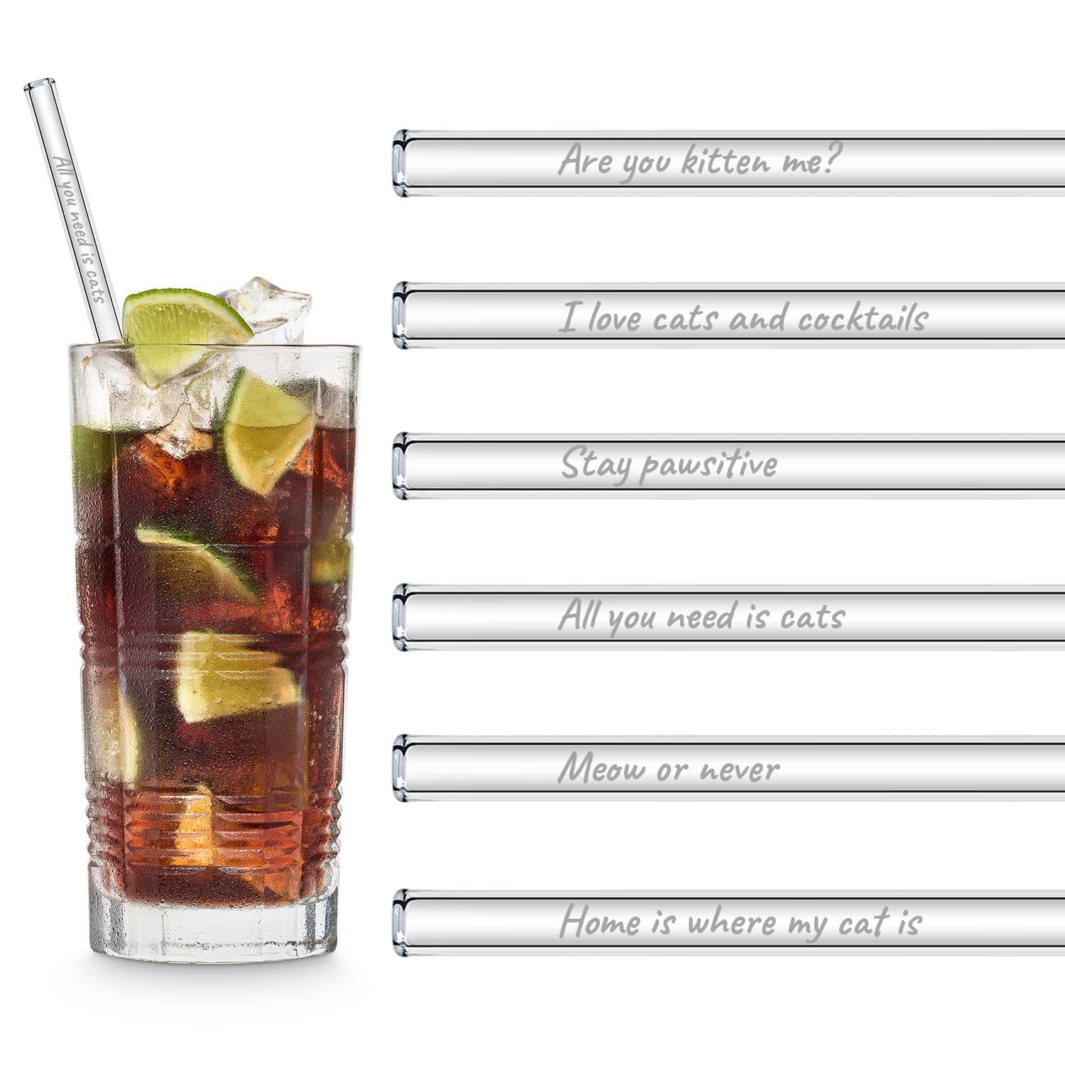 Katzen Sprüche Edition 6x Glasstrohhalme mit gravierten Katzen Zitaten 15cm, 20cm, 23cm