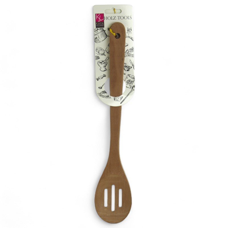 Kaya Home Holz-Suppenlöffel mit 3 Schlitzen – schonend für Töpfe & Pfannen, ergonomischer Griff