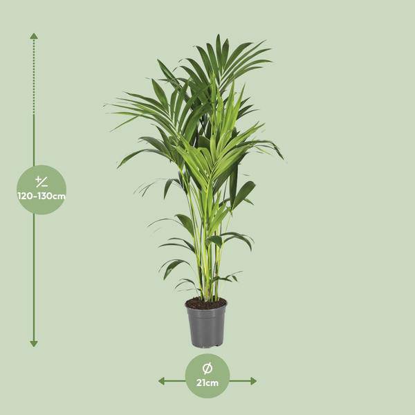 Mit einer Größe von Ø21cm x H130cm bringt die Kentia sofort tropisches Flair in dein Zuhause oder Büro. Ihre langen, federartigen Wedel und die schlanke Wuchsform machen sie zu einer dekorativen und stilvollen Ergänzung für moderne Wohnräume.
