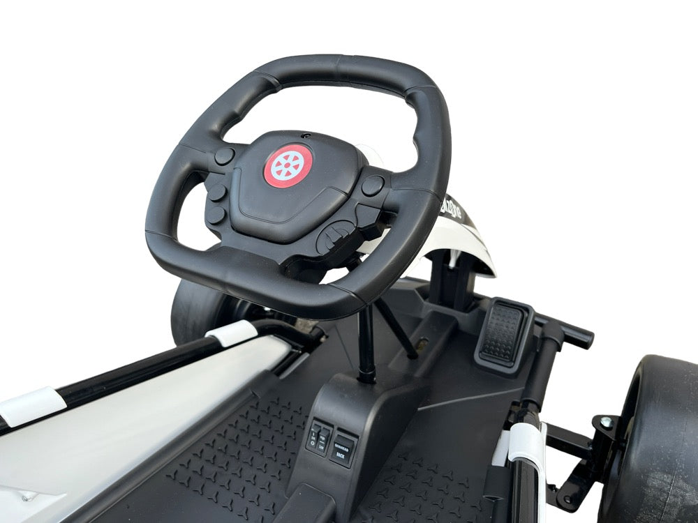 Die beiden 350-Watt-Motoren bringen eine Gesamtleistung von satten 700 Watt hervor, die dem Drift-Kart eine Höchstgeschwindigkeit von 18 km/h verleihen. Die Soft-Startautomatik ermöglicht einen geschmeidigen Start, während die Motoren für grenzenlosen Fahrspaß und aufregende Abenteuer sorgen. Das Drift-Kart – ein echtes Kraftpaket für kleine Rennfahrer!