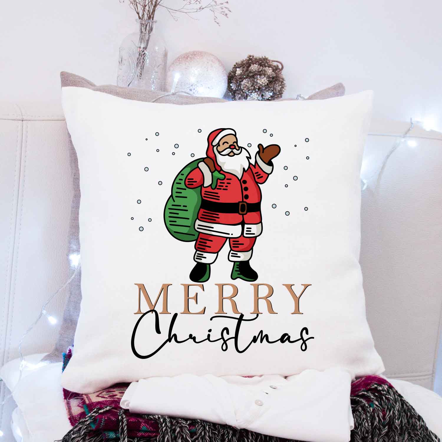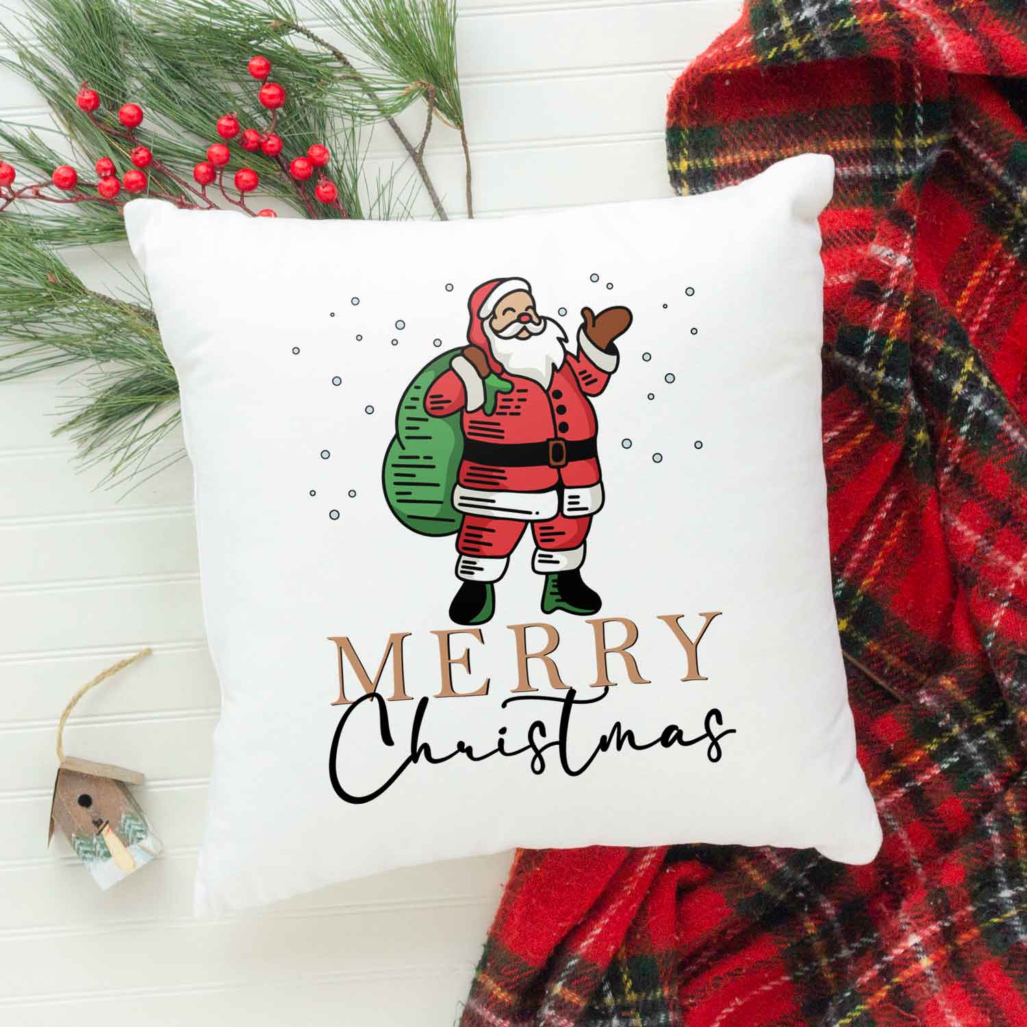 Kissen mit Weihnachtsmotiv - Merry Christmas Santa - Weihnachtsdeko - Geschenke für Frauen & Männer