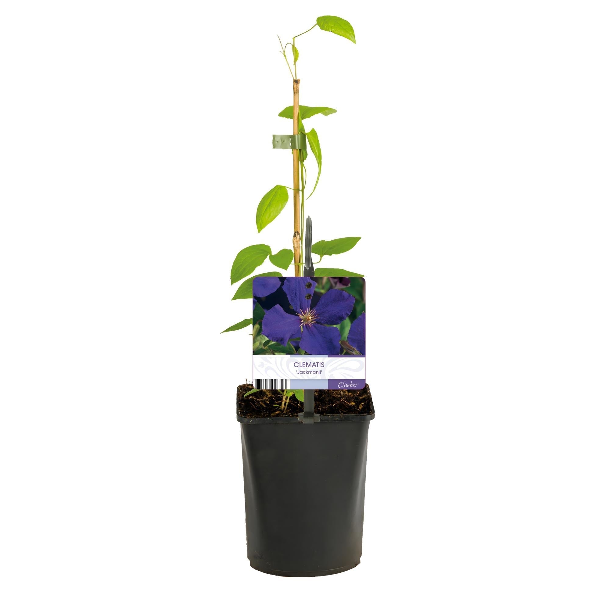 🌸 Prächtige Blüten: Clematis Jackmanii überzeugt mit großen, tiefvioletten Blüten von Sommer bis frühem Herbst.