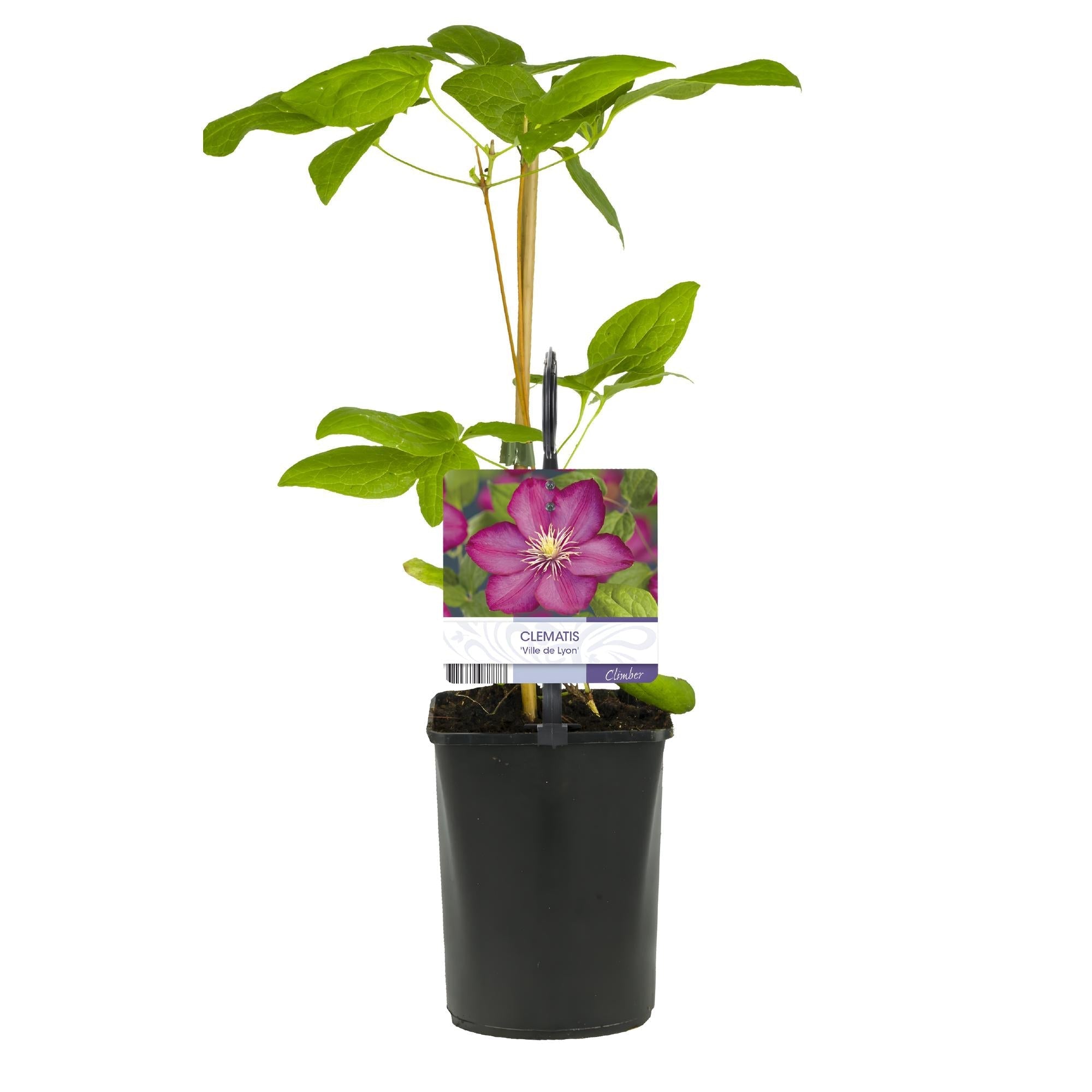 Clematis 'Ville de Lyon' ist eine prächtige Kletterpflanze, die jeden Garten, Balkon oder jede Pergola in ein Meer aus rosa Blüten verwandelt. Mit einer Blütezeit von Juni bis September bietet sie über mehrere Monate hinweg strahlende Farbe und optischen Charme.