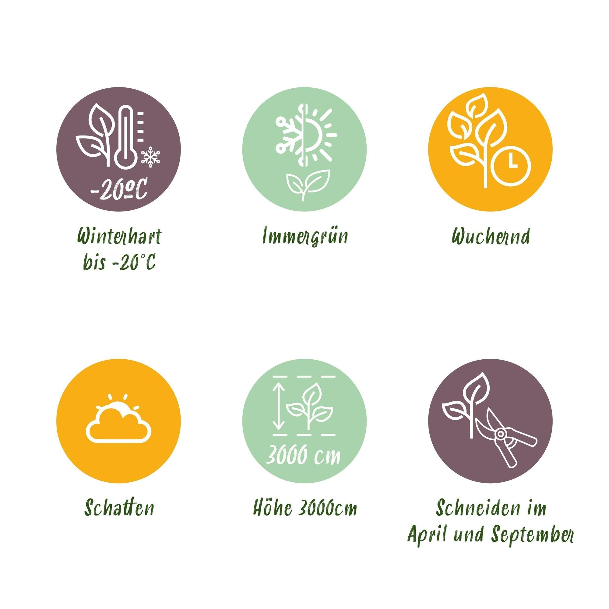 Dieses Set enthält 2 Pflanzen in 11 cm Töpfen mit einer Höhe von ca. 40 cm – perfekt für die Gestaltung von Hängeampeln, Wandbegrünungen oder als dekorativen Bodendecker. Hedera 'Glacier' verbindet Vielseitigkeit, Schönheit und einfache Pflege – ideal für Pflanzenliebhaber jeden Niveaus.