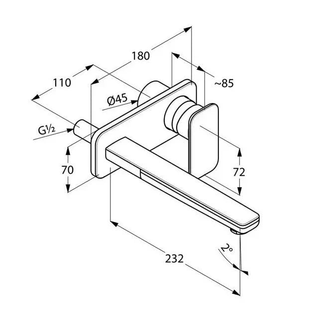Unterputz 2 Loch-Waschtisch-Wand-Einhebelmischer Ausladung: 220 mm Feinbau-Set mit Wandauslauf Hergestellt aus verchromtem Messing Geschlossener Hebel aus verchromtem Metall Strahlregler M... Lesen Sie mehr