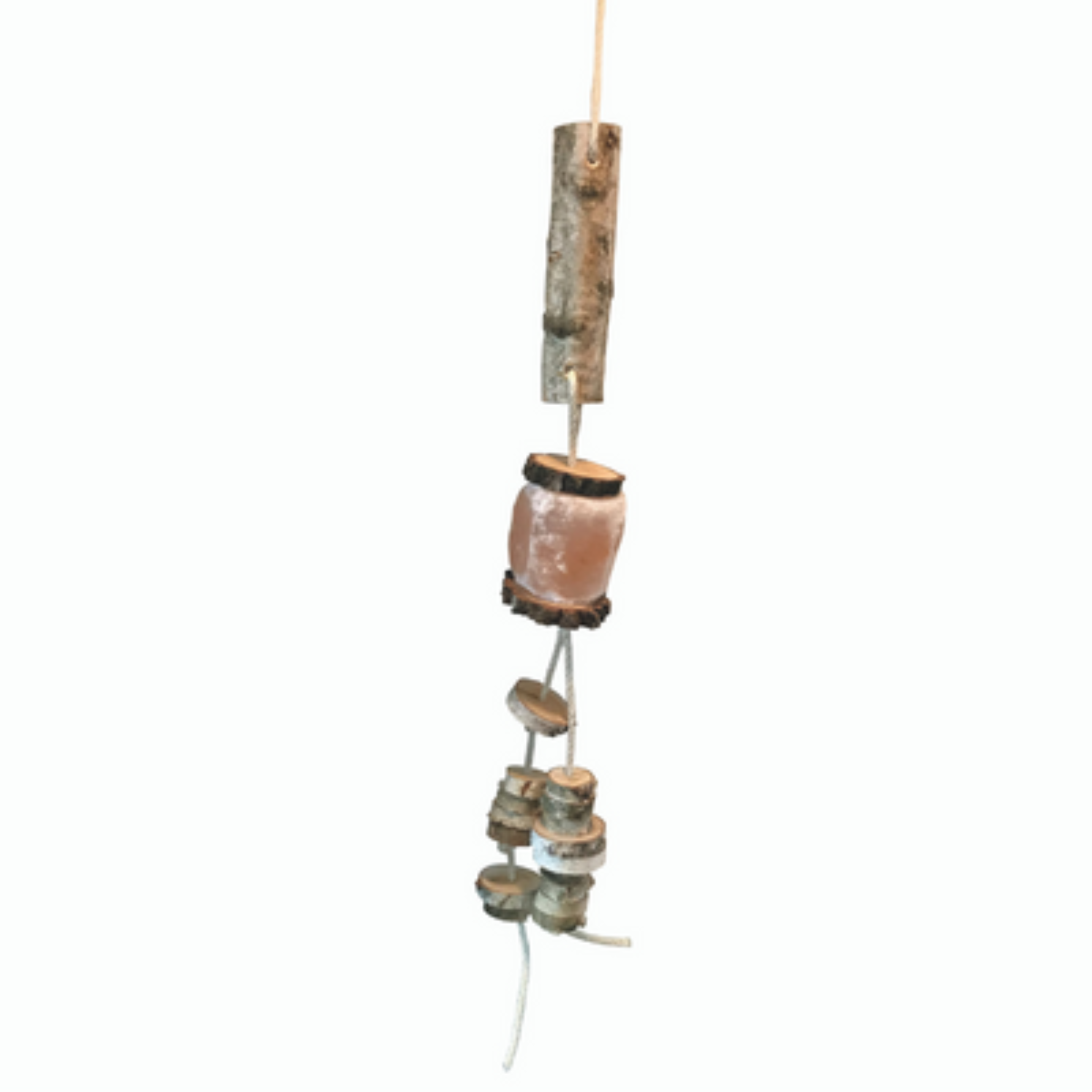 Vielseitiges Design: Kombination aus Knabberholz, Himalaya-Leckstein und beweglichen Birkenholzscheiben für maximalen Spaß.