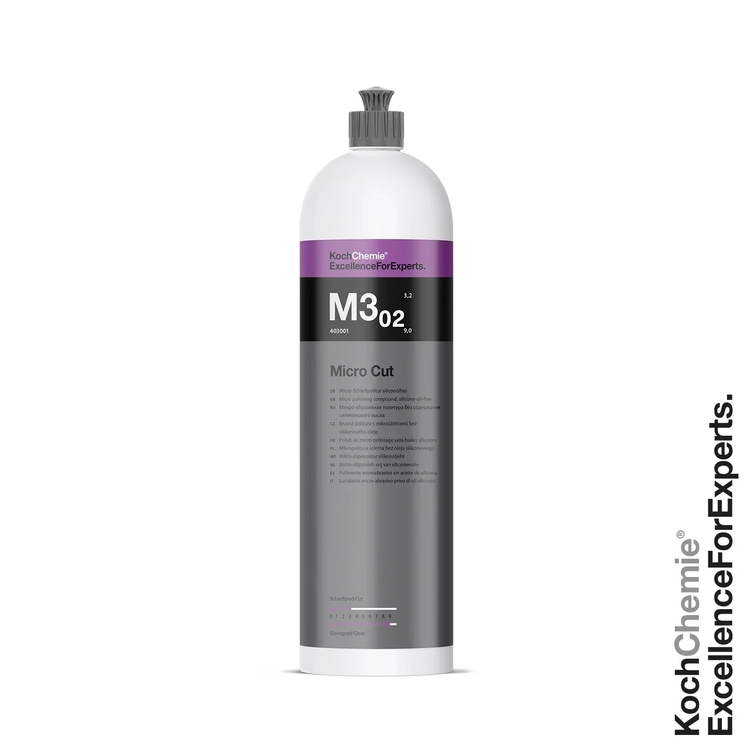 - Micro Cut M3.02 ist ein Maschinen-Micropoliermittel der neusten Generation zur dauerhaften Entfernung von Polierschleiern, Hologrammen, feinen Kratzern und