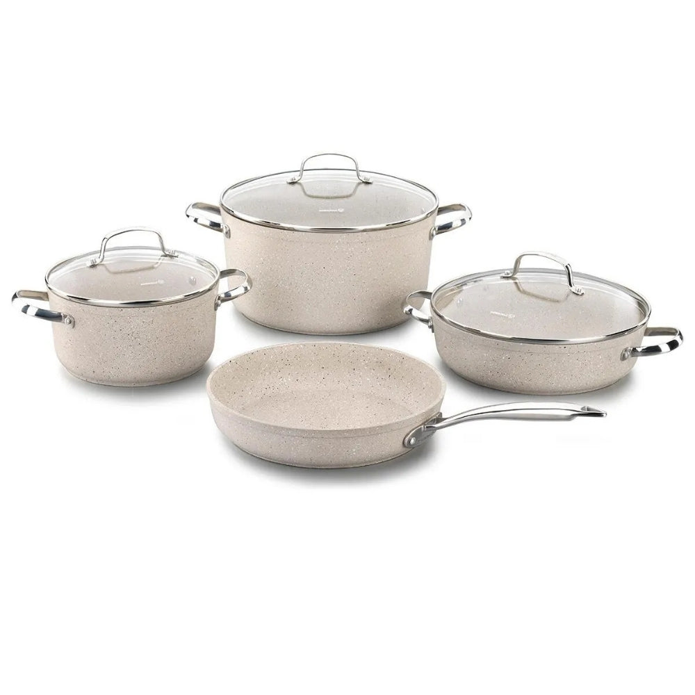 Kochtopf- & Pfannenset 7-teilig Beige – Granit-PTFE, Solar Base, induktionsgeeignet
