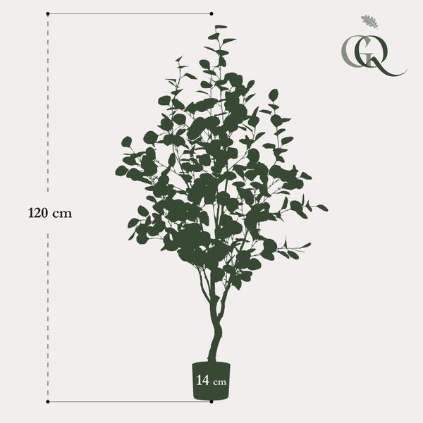 Der Eukalyptusbaum, auch bekannt als Blauer Gummibaum, gehört zu den beliebtesten Grünpflanzen für moderne Wohn- und Arbeitsbereiche. Mit seinen vielen sattgrünen und silbrig schimmernden Blättern bringt er eine elegante, frische Atmosphäre in jeden Raum. Die künstliche Variante ist täuschend echt gestaltet und lässt sich von einem echten Eukalyptusbaum kaum unterscheiden.