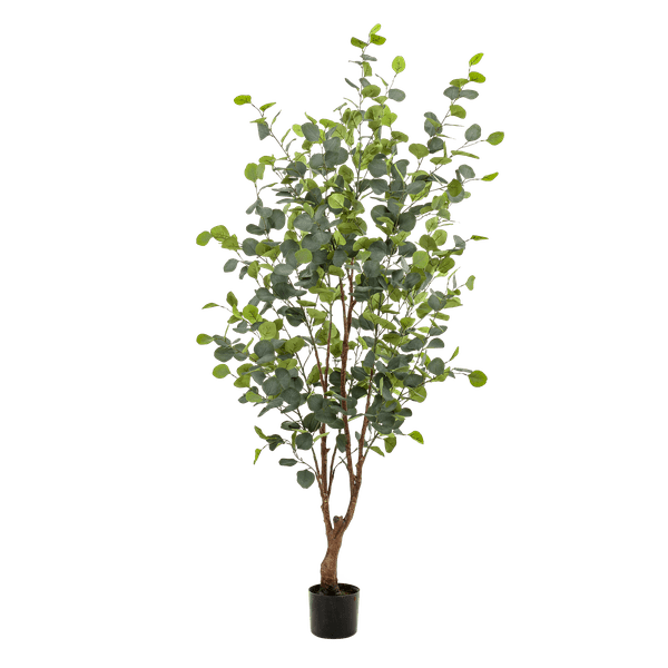 Der künstliche Eukalyptusbaum (Blue Gum Tree) ist eine stilvolle und pflegefreie Alternative zu echten Zimmerpflanzen. Mit seiner Höhe von ca. 140cm und den detailreich gestalteten Blättern in sattem Grün und dezentem Silber wirkt er täuschend echt – kaum vom Original zu unterscheiden. Die hochwertige Verarbeitung sorgt für ein natürliches Erscheinungsbild ohne den Pflegeaufwand einer echten Pflanze.