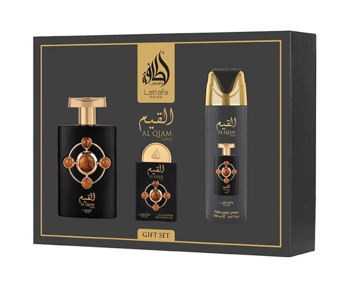 Bewährte Luxus-DNA: Al Qiam Gold von Lattafa Pride verbindet orientalische Wärme mit moderner Eleganz. Das 3-teilige Set liefert Performance für den Alltag und Auftritt für besondere Anlässe – hochwertig verpackt, zuverlässig im Einsatz, ideal zum Verschenken.