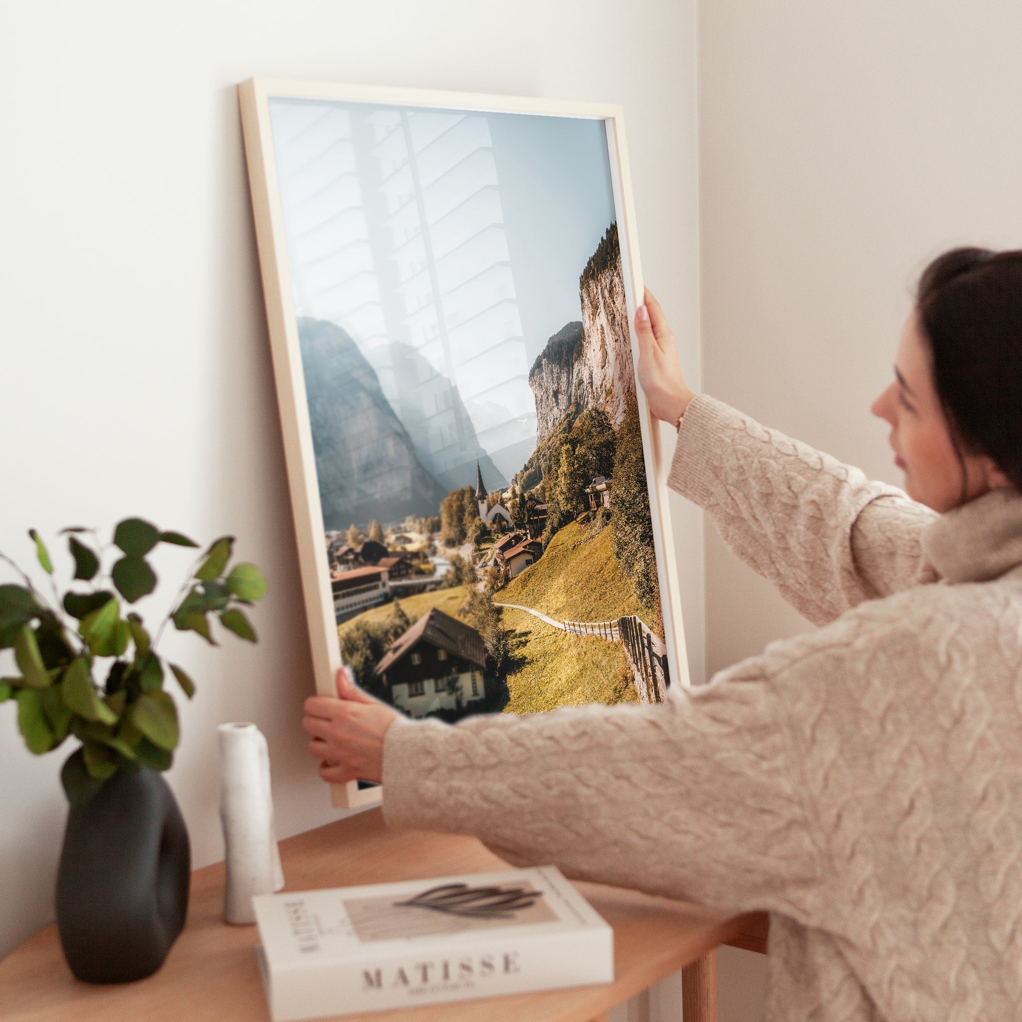 Experience the heart of Switzerland with this stunning Lauterbrunnen Valley print. Towering cliffs, cascading waterfalls, and charming chalets make this... Lesen Sie mehr