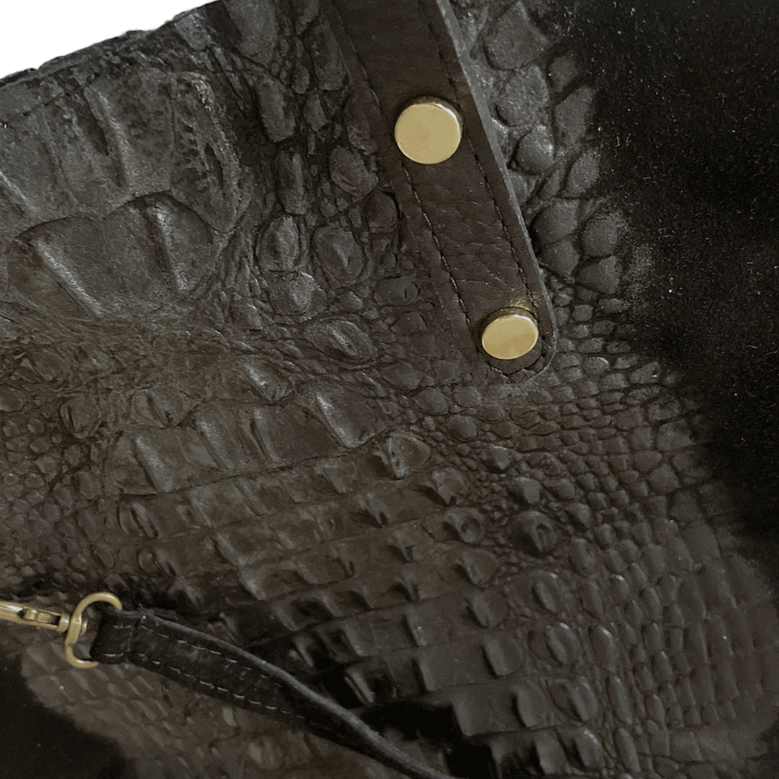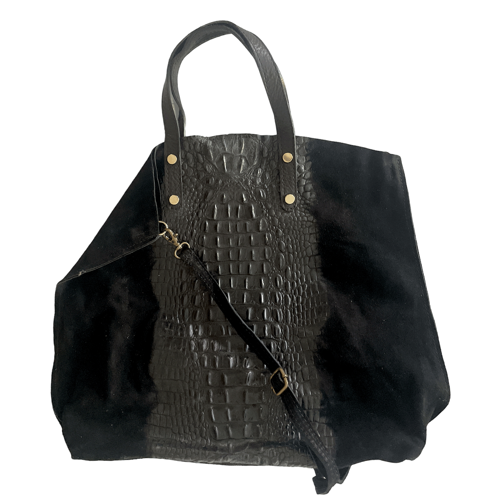 Leder Beutel Tasche Krokooptik Veloursleder Schwarz