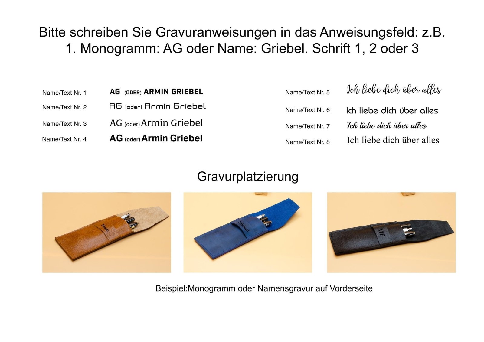 GRAVIERUNGSWUNSCH: Die Gravur kann nur auf der Vorderseite des Stiftetuis vorgenommen werden.