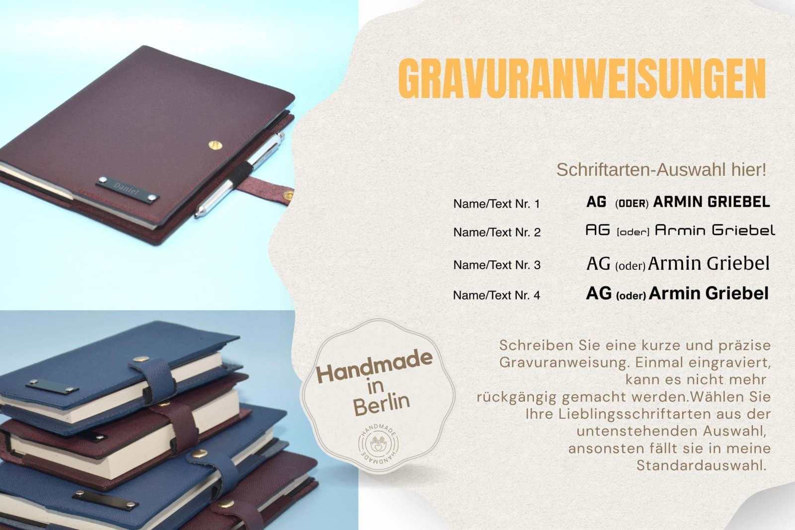 Personalisierbare Edelstahl-Plakette – macht das Reisetagebuch einzigartig.