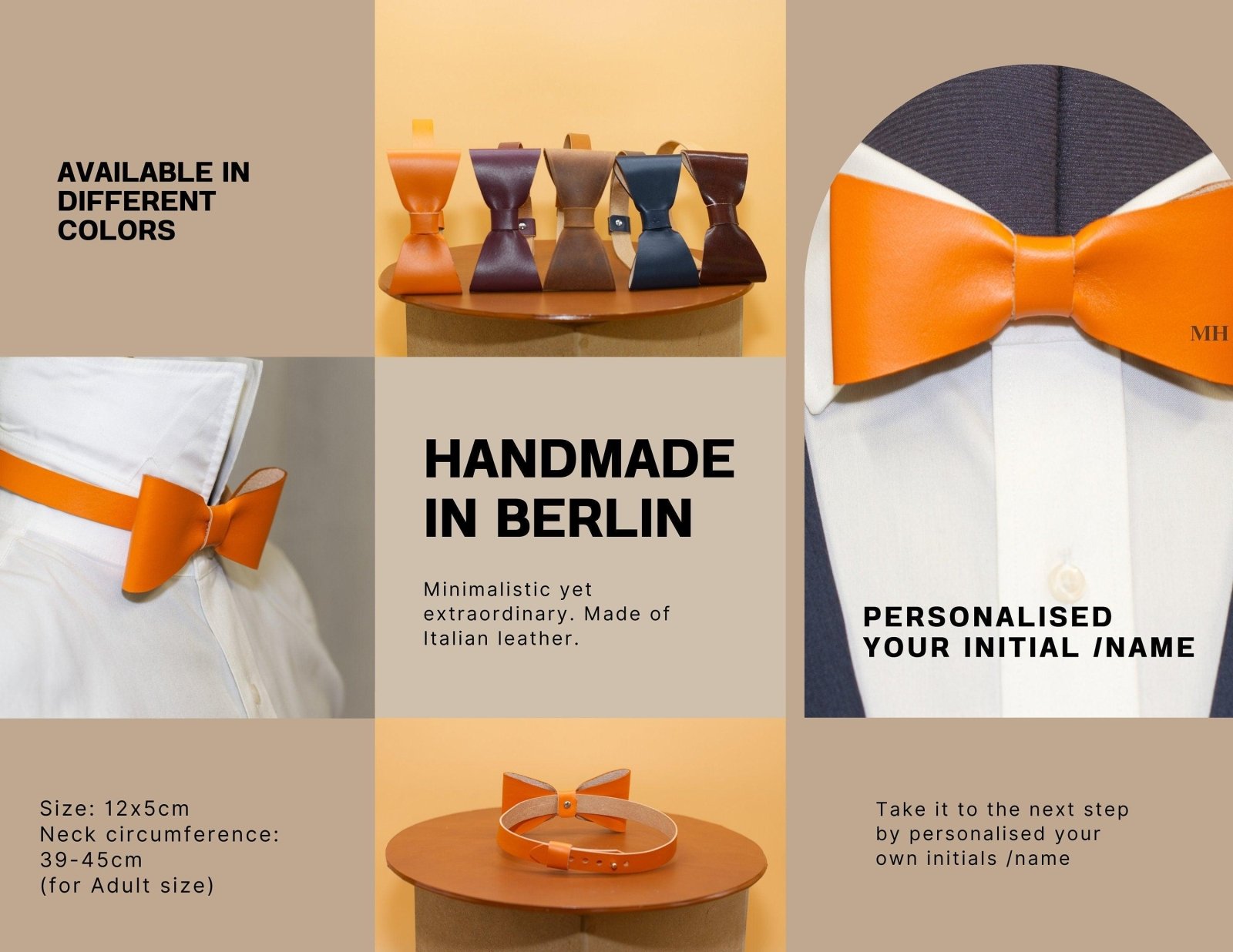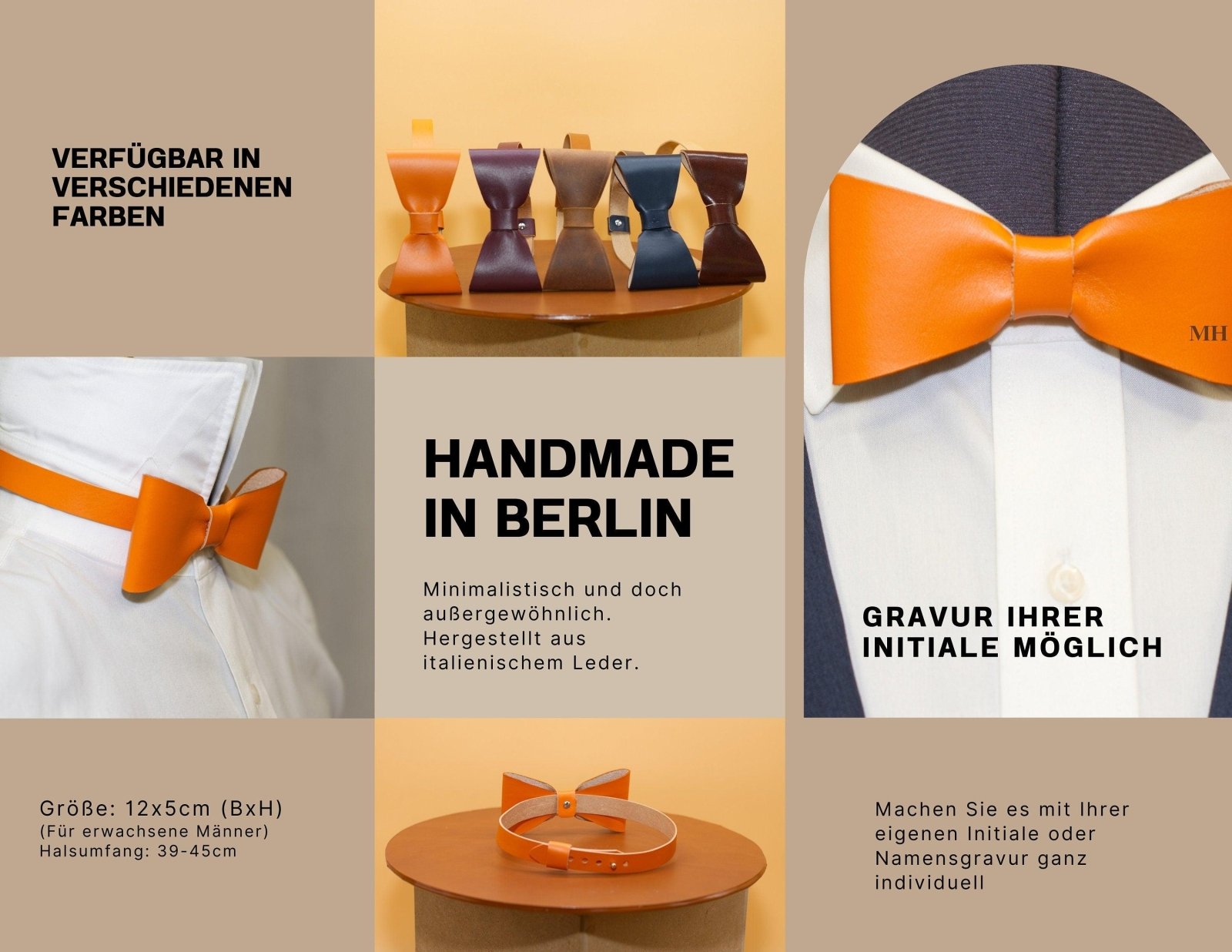 Handgefertigt in Berlin: Unsere minimalistische, aber außergewöhnliche Lederfliege wird mit viel Liebe zum Detail in unserem kleinen Atelier in Berlin hergestellt. Jede Fliege ist ein Unikat und wird aus hochwertigem italienischen Leder gefertigt.
