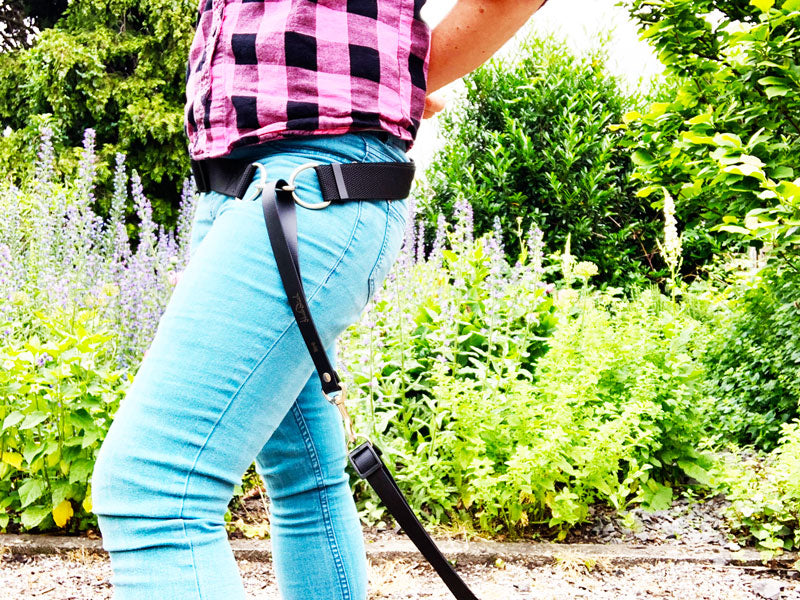 Mit dem Bauchgürtel CHILL können Sie Ihrem Hund eine Routine vermitteln. Haken Sie ihn am mitlaufenden D-Ring rechts ein (oder tragen Sie ihn links) und nutzen Sie eine unserer Leinen mit fester Länge entsprechend der Umgebung in der Sie laufen. Entscheiden Sie durch Stehen bleiben, ob der Hund stehen bleibt und entscheiden Sie durch das Weitergehen oder Wegdrehen in welche Richtung sich der Hund orientieren soll.