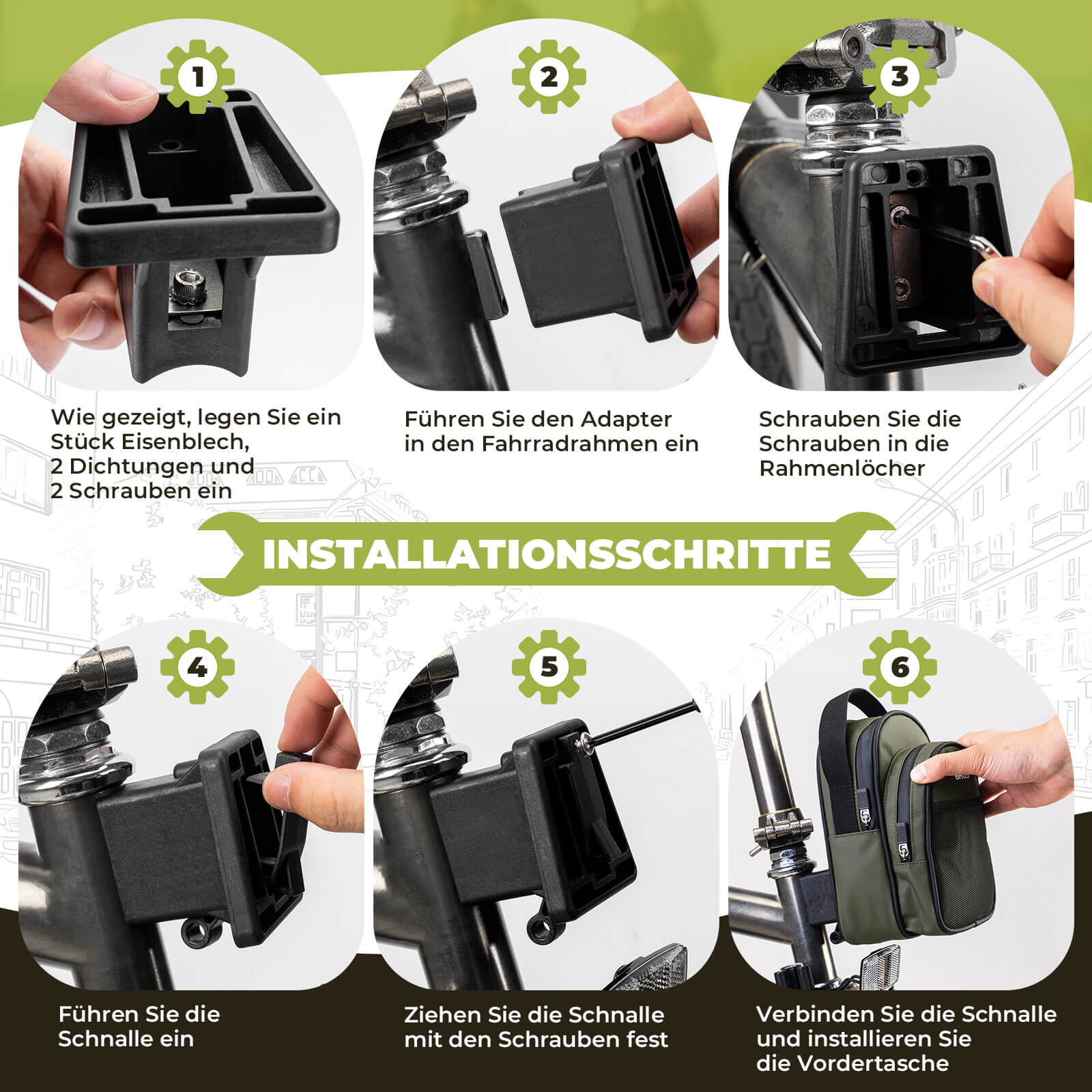 Bitte stellen Sie vor dem Kauf sicher, dass sich an der vorgesehenen Befestigungsstelle Ihres Fahrradrahmens zwei kleine Löcher befinden, um die Montage der Schnalle zu ermöglichen. Nur mit dem mitgelieferten ROCKBROS-Adapter verwendbar – sorgt für sicheren Halt ohne Verrutschen. Fremdadapter nicht empfohlen.