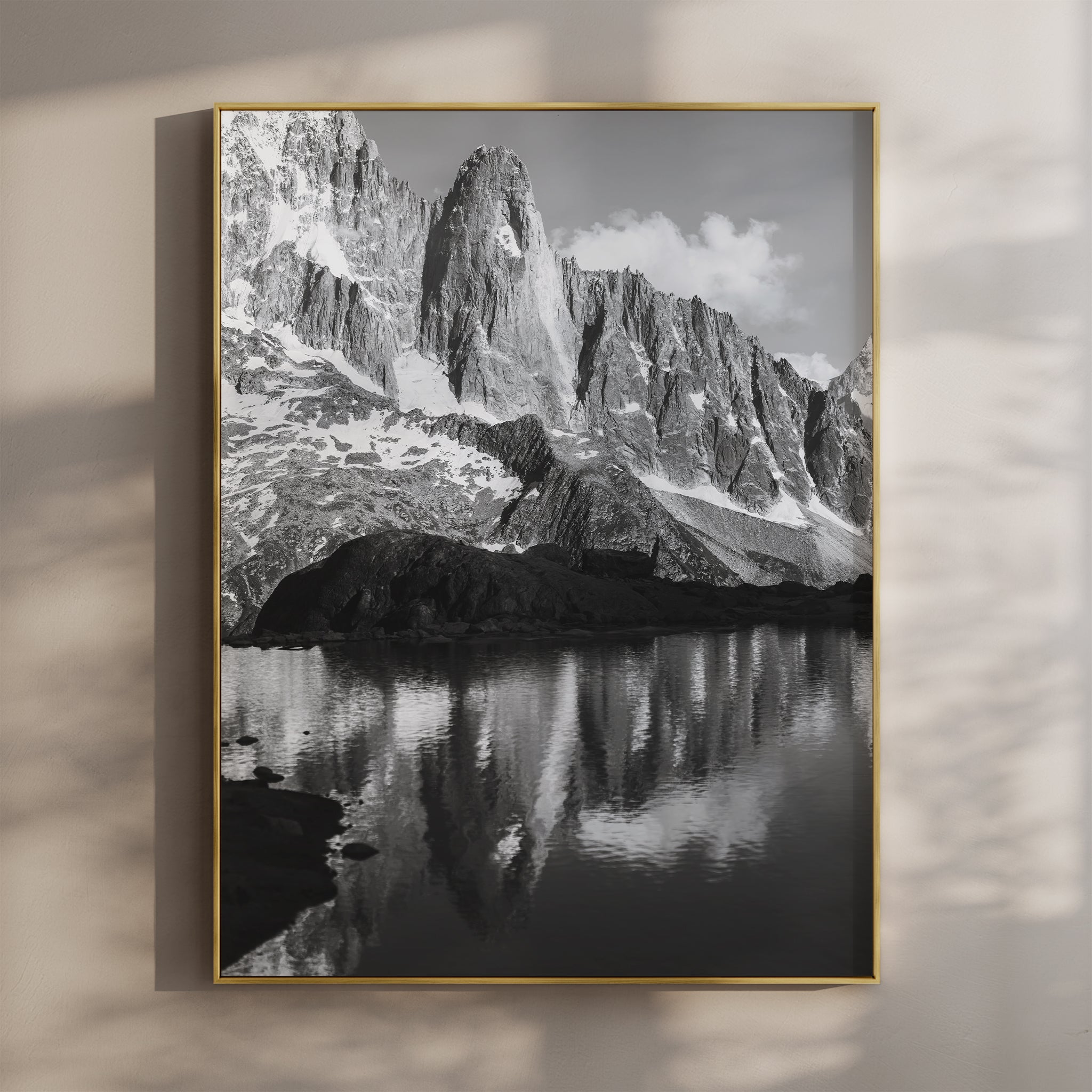 Les Drus Mountain Reflection | Black and White Chamonix Art Print
